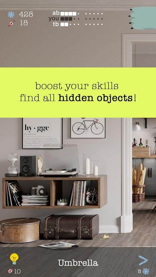 Hygge Challenge - Beyninizi değil, gözlerinizi zorlayın! Aynı görüntülerdeki tüm tutarsızlıkları rakibinizden önce ne kadar hızlı fark edebileceksiniz? Belirli nesneleri farklı yerlerde net bir şekilde görme yeteneğinizi test edin, böylece turnuvalarda her zaman kazanın ve kendi gözlem yeteneğinizi sınayın. Düşünülmüş iç mekan tasarımlarına sahip güzel resimleri inceleyin, böylece hem eğlenceli hem de faydalı olacaktır. Faydası, gelecekteki evinizi veya dairenizi görselleştirme şansına sahip olmanız ve orada zihinsel olarak yaşamaya başlamanızdır!