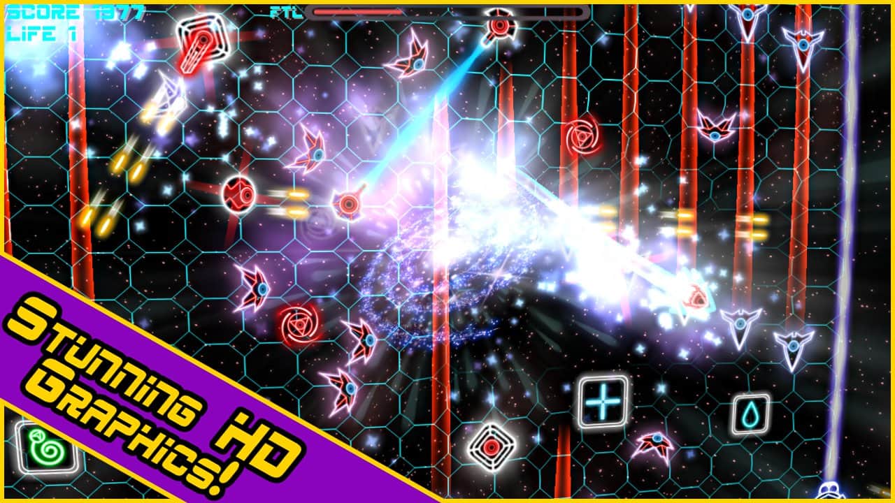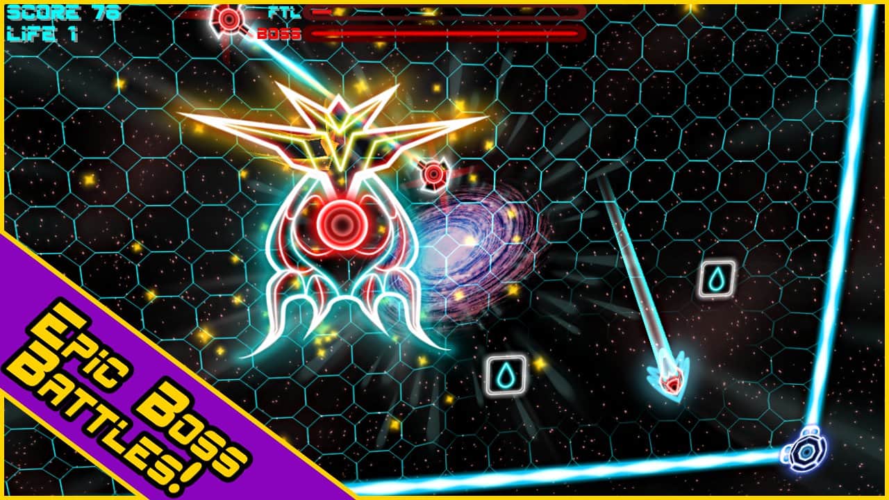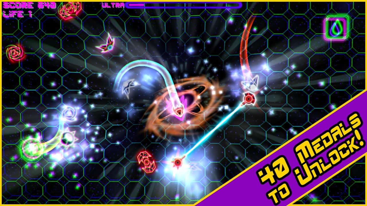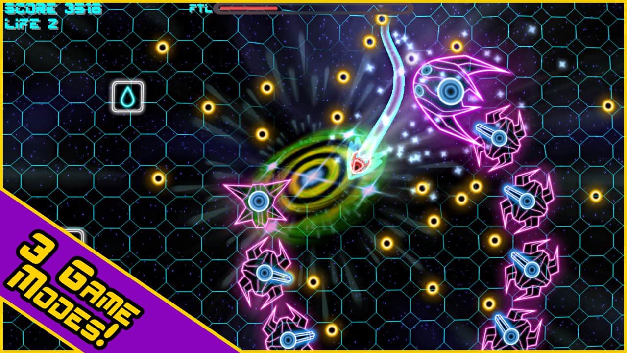 Oyun, neon tarzında tasarlanmış olup, birkaç modda oynama imkanı sunar; elbette, gelişim sistemi ve çeşitli başarılar da mevcut.