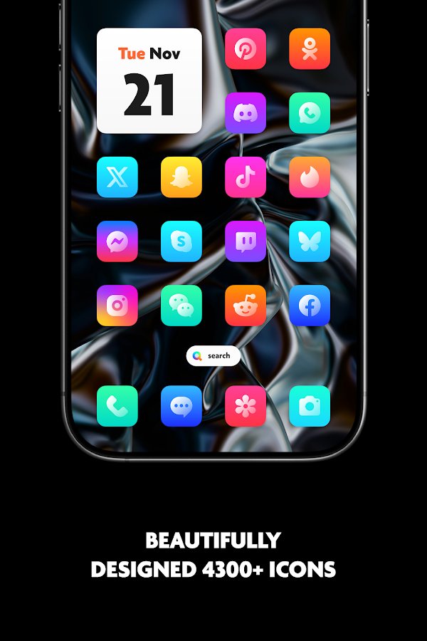i18 İkon Paketi - Cihazınızın ekranını iOS 18'den ilham alan şık bir ikon seti ile güncelleyin. Modern ve zarif bir görünüm kazandıran yuvarlatılmış köşeler, gradyanlar ve zarif renklerle tasarımın tadını çıkarın. Koleksiyonda 5100'den fazla ikon ve düzenli olarak güncellenen güzel bulutlu duvar kağıtları bulunuyor. Açık ve koyu mod desteği, tasarımın her ortamda uyumlu olmasını sağlıyor. Paket, popüler launcher'larla uyumlu olup düzenli olarak güncellemeler alıyor ve gelecekte widget'lar da eklenecek.