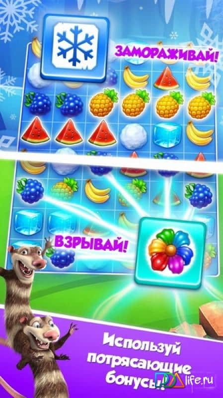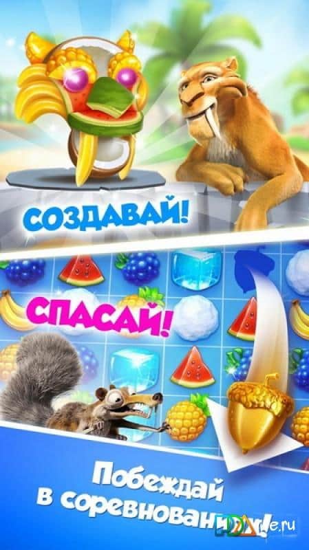 Buz Devri Çığlığı – herkesin sevdiği animasyon, mobil android cihazlarınızda mükemmel bir eğlence oyunu olarak yeniden karşınızda. Oyun, 'üçlü eşleştirme' türündedir, ancak kendine özgü özellikleri ve detayları vardır. Oyun, bu türdeki tüm oyunlarda olduğu gibi, meyveleri hareket ettirerek bir sıraya dizmek üzerine kuruludur; üç veya daha fazla aynı meyve bir araya geldiğinde kaybolurlar. Topluluklara katılın ve ilginç ödüller kazanma fırsatını kaçırmayın! İyi oyunlar!