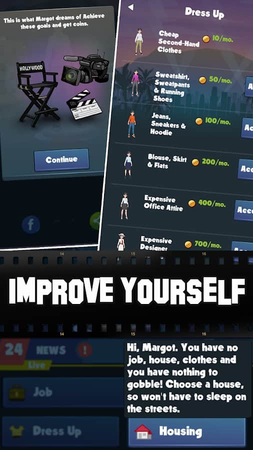 Tembel Ünlü - Hollywood Hikayesi, işsiz bir öğrenciden süperstar olmaya giden yolu geçeceğiniz harika bir simülatördür. Oyunun ana karakterini kontrol altına alın ve onunla birlikte kişilik gelişiminde zorlu bir yolculuğa çıkın. Bu oyunda sizin için tüm kapılar açılacak, aktris, moda tasarımcısı veya üst düzey model olabileceksiniz. Sanal Los Angeles'ı ve Hollywood'u fethedin. Garson, yönetici ve makyöz olarak çalışarak kariyerinize başlayın ve daha fazlasını hedefleyin. Pilot, şoför olmayı öğrenin veya yelken sporuyla ilgilenin, her şey sizin ellerinizde. İnsanlarla tanışın, buluşmalar ayarlayın ve ünlü olun.