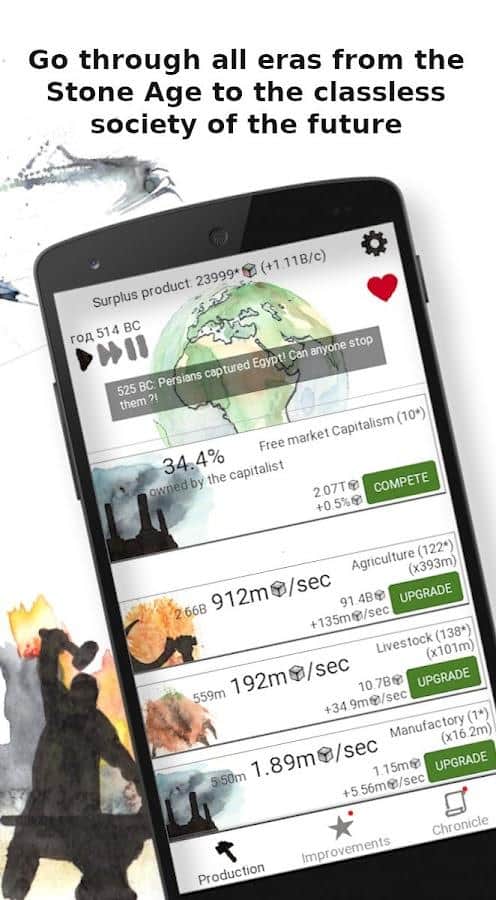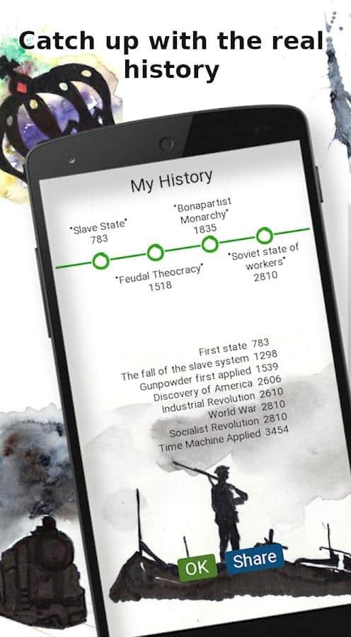 Boşta Medeniyet: Dünya Tarihi - bu tıklama oyununda, ilkel dönemden başlayarak, yıldızlararası seyahatler ve zaman yolculuklarıyla dolu yakın geleceğe kadar insanlık tarihinin kendi versiyonunu yazma fırsatına sahipsiniz. Yeni tarihin oluşumu, Roma'nın Çöküşü, Haçlı Seferleri, Sanayi Devrimleri, Dünya Savaşları ve benzeri birçok gerçek tarihi olay gibi olaylara dayanarak gerçekleşecektir. Bu hikayenin sonucu tamamen sizin ellerinizde, hangi seçimi yapacağınıza ve bu insanlık tarihinin en önemli olaylarının nasıl sonuçlanacağına siz karar vereceksiniz. Kişisel olarak bu oyunu beğendim, diğer tıklama oyunlarından farklı bir şekilde öne çıkıyor.