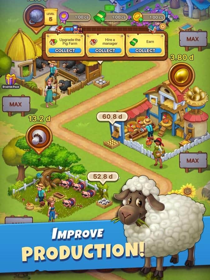 Tembel Çiftçi: Köy Hikayem - günümüzde çiftçi olmak çok daha kolay hale geldi: neredeyse tüm süreçler otomatikleşti ve kendi kendine gerçekleştiriliyor. Hasat ve hayvanlardan kazanç elde edin, yöneticiler kiralayın ve modern ekipman satın alın, dünyada popüler çiftçi unvanı için mücadele edin, çiftliğinizin genişlemesini izleyin ve inşaat için yeni araziler edinin. Hayvanları geliştirin, böylece görünüşleri değişsin ve daha hızlı yararlı kaynaklar sağlayın. Kartları toplayın ve sahip olduklarınızla durmadan gelişmeye devam edin.