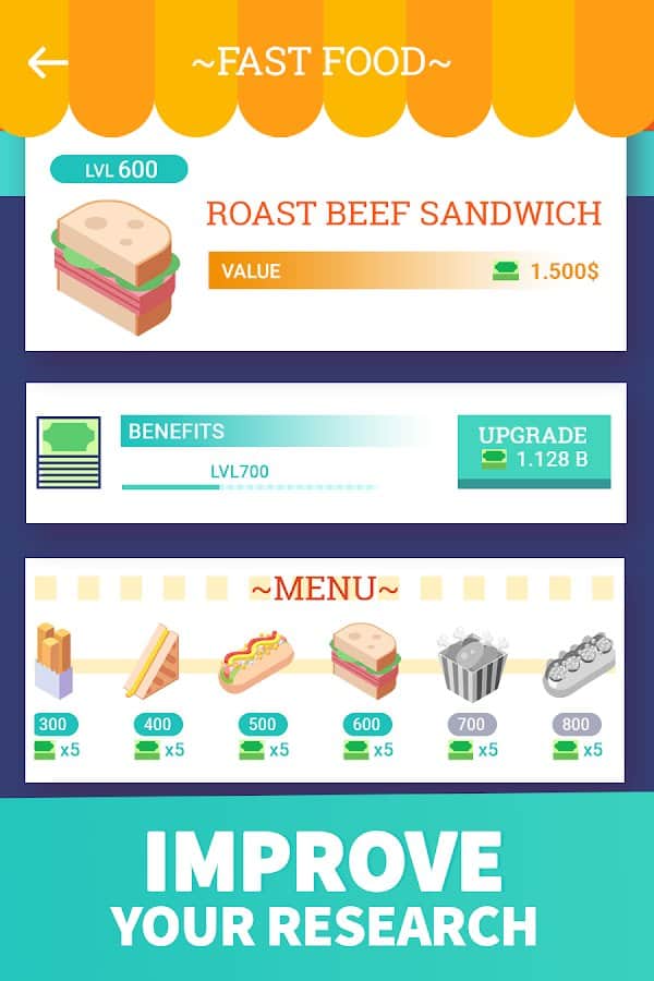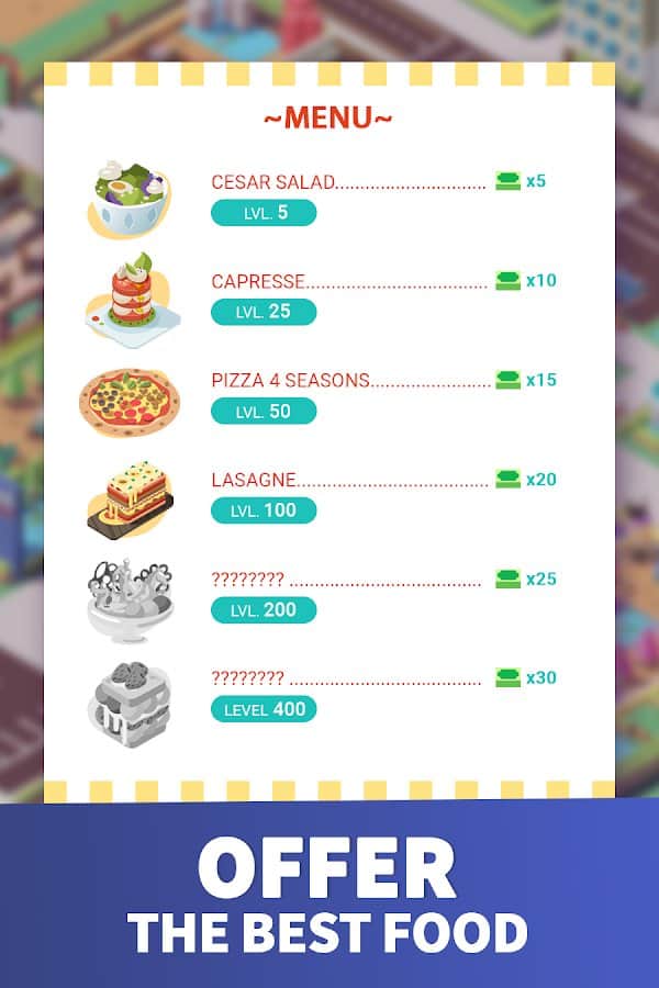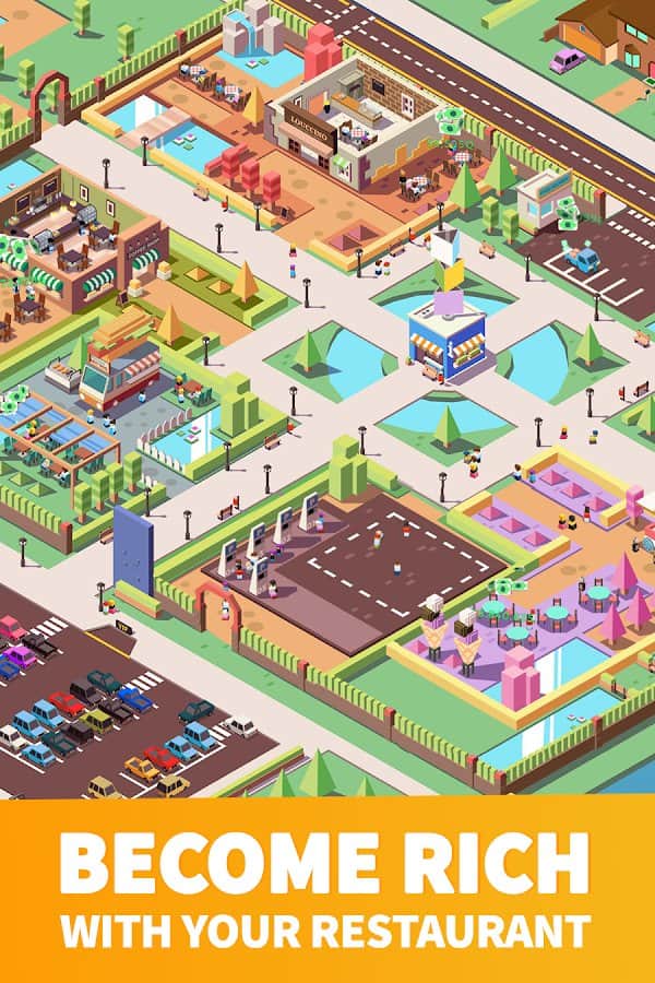 Tembel Yemek Restoranı - Tycoon İmparatorluğu Oyunu - kendi restoran imparatorluğunuzu kurmaya çalışacağınız simülatör unsurları içeren bir ekonomik stratejidir. Oyunun başında yalnızca küçük bir büfeye sahip olacaksınız, ancak gelir elde ettikçe yeni işletmeler satın alabilir, mobil kamyonlar alabilir ve prestijli mekanlar inşa edebilirsiniz. Bu süreçte ekonomik stratejinizi seçme ve gelişim ile genişleme konusunda neredeyse tam bir özgürlüğe sahip olacaksınız.