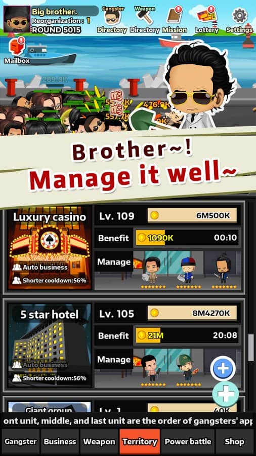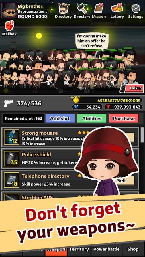 Idle Gangs VIP – gerçek gangsterlerden oluşan benzersiz bir ekip kurma şansına sahipsiniz. Oyun, suç dünyasının inanılmaz kombinasyonları ile sihirli varlıkların, ejderhaların, şövalyelerin ve hatta titanların bir arada bulunduğu bir dünyayı birleştiriyor. Epik savaşlara katılın, ekranı dokunarak karakterleri yönetin ve bölgeleri ve itibarı kazanın. Çetenizi geliştirin, paralarla çeşitli silahlar satın alın ve karakterlerin yeteneklerini yükseltin. Oyun son derece sıra dışı. Dinamik yapısıyla ve net grafikleriyle sizi büyüleyecek.