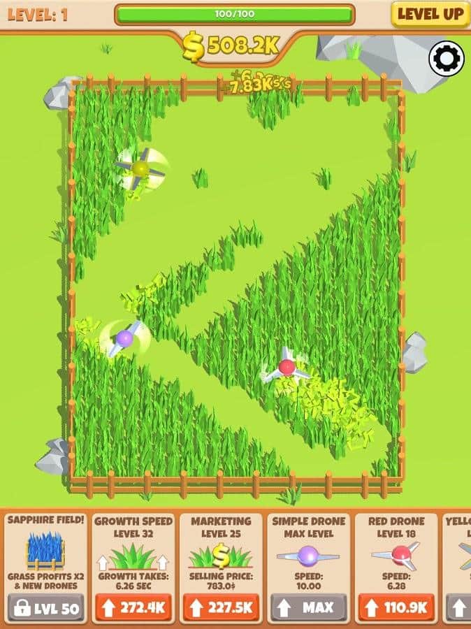 Boşta Olan Çim Biçme Makinesi – çim biçme üzerine eğlenceli bir Android oyunu keşfedin. Bu oyunda, ekranınıza bir parmak dokunuşuyla çiminizi biçebilirsiniz. Ayrıca, belirli bir hızda işini yapacak otomatik çim biçme makinelerini de kullanabilirsiniz. Ekranda parmağınızı kaydırın ve mükemmel bir çim elde edin. Alanınızda otomatik olarak hareket edip çim biçen yeni çim biçme makinelerini keşfedin. Kendinize yararlı güçlendiriciler ve bonuslar satın alın ve hava değişiklikleri ile yağmura hazırlanın.