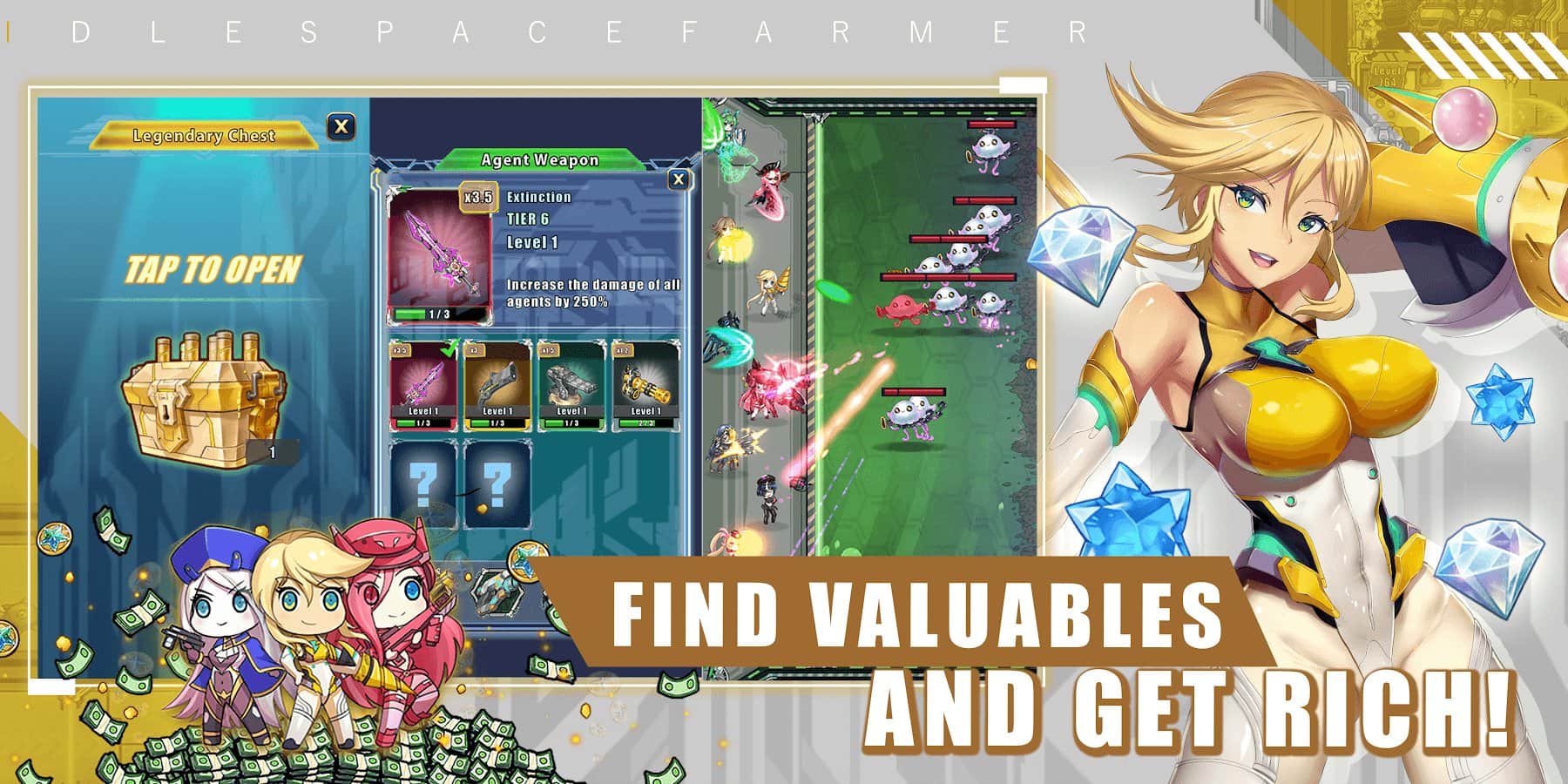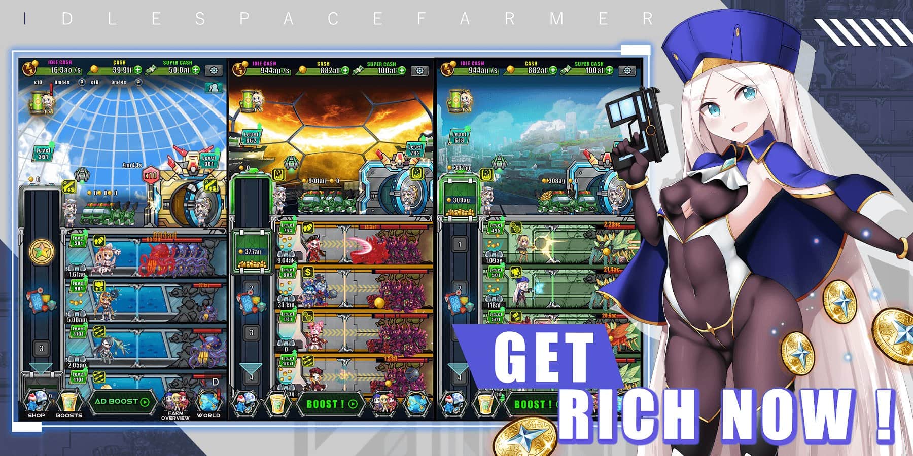 Boşta Uzay Çiftçisi - Waifu Yönetici Simülatörü – android için harika bir simülasyon oyunu, burada uzay çiftliğinizi yöneteceksiniz. Bu oyunda, sizi tehlikeli canavarların beklediği uzak bir gezegene seyahate çıkacaksınız; bu canavarlarla waifu ajanları aracılığıyla başa çıkmanız gerekecek. Uzay çiftçisi olun ve muazzam kâr elde edin ve çiftliğinizi geliştirin. Harika bir fırsattan yararlanın ve evreni fethedin. Yeni uzay ajanları işe alın ve en iyi oyuncu olun.