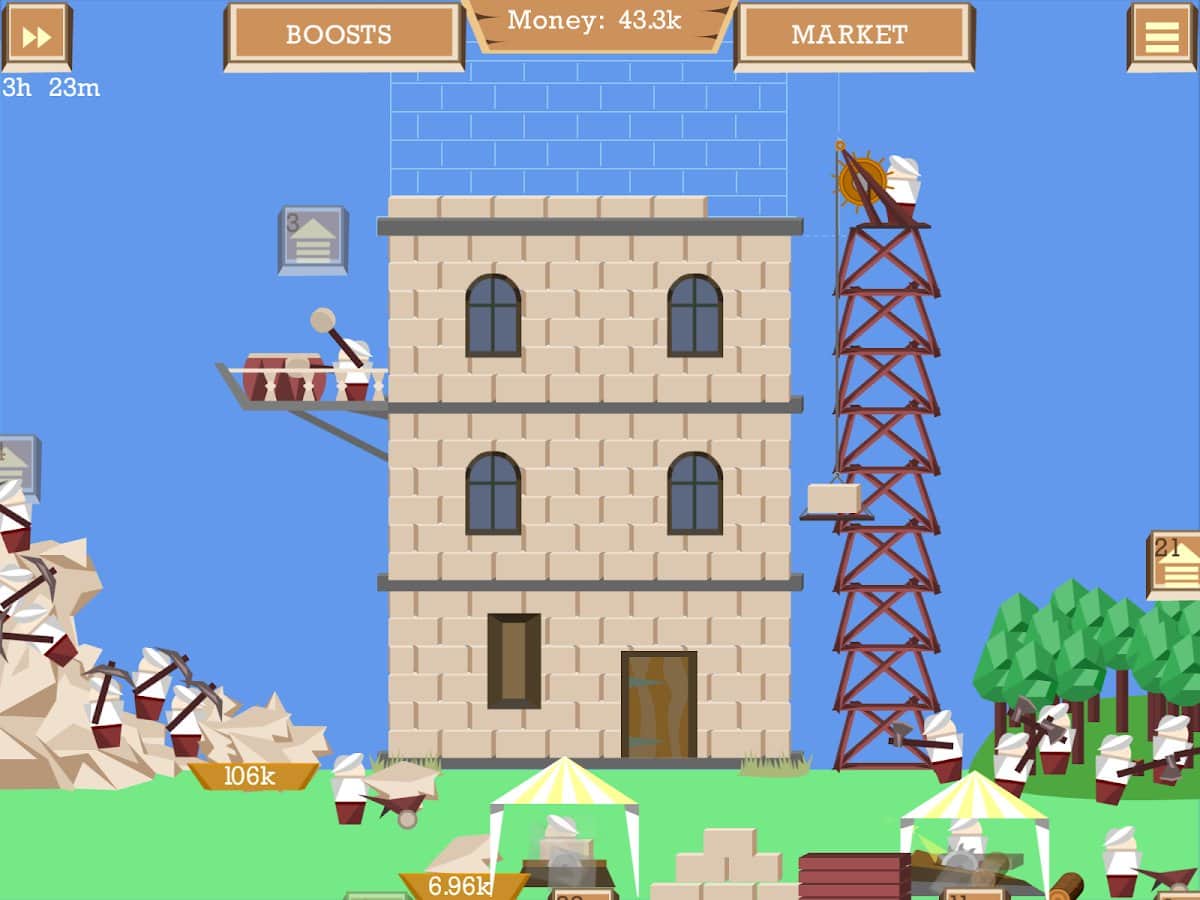 Boşta Kule İnşaatçısı: inşaat magnatı - dünyanın en yüksek kulesinin inşaatını yönetmek için görevlendirildiniz. Süreci daha hızlı tamamlamak için gerekli kaynakları satın alın ve üretin! Öncelikle bir ocağa gidin ve taş çıkarın, ardından tuğla elde etmek için işleyin. Kule yüksekliği arttıkça, aynı kalitede çalışmak için daha fazla tuğlaya ihtiyacınız olacak; ekipman seviyesini yükselterek ve yeni işçiler işe alarak inşaatı geliştirin. Birçok aşamada ormandaki ağaçlar size yardımcı olacaktır, ancak bu kaynağın tükenmesini unutmayın ve çevreye dikkat edin.