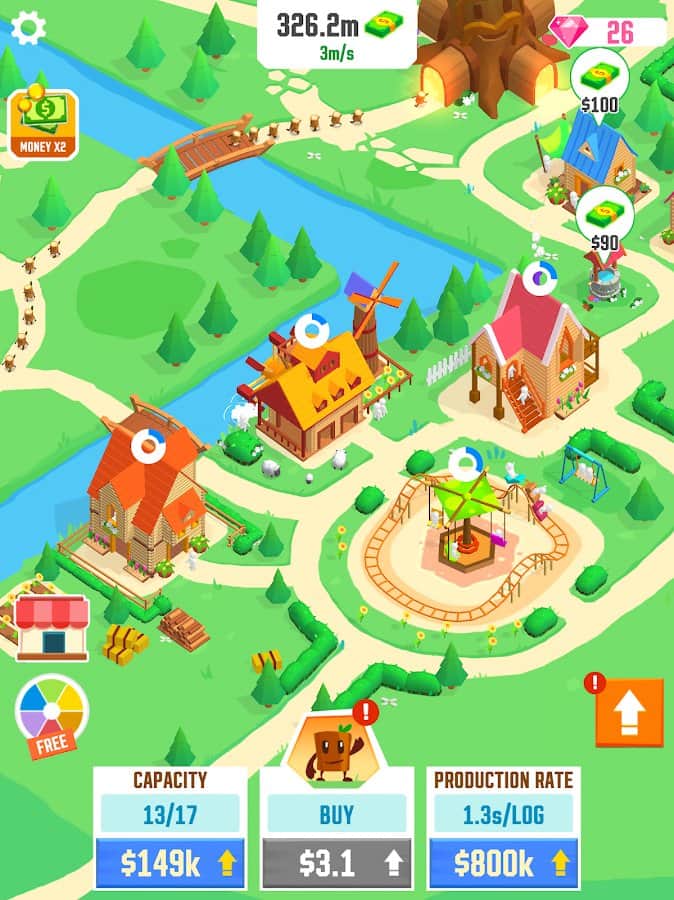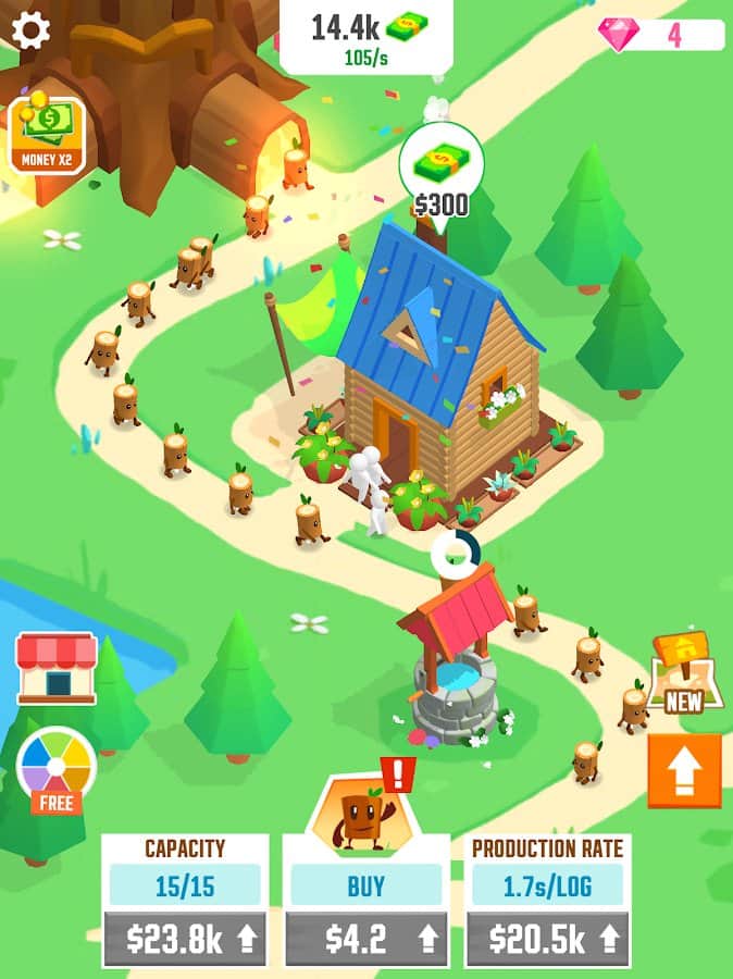 Büyük, ahşap Tembel Ağaç Şehri'ni, her şeye gücü yeten büyük ağaçtan çıkan sevimli kütükler sayesinde inşa edin. Küçük bir kütükten oluşan küçük bir kuyu ile başlayın ve hızla inşa edilmeyen tam evlere ulaşın. Kütüklerin hedeflere hızlı ulaşması için ekrana birçok kez tıklayın. Yeni yapılar açın: evler, köprüler, oyun alanları, çiftlikler, kuyular ve ardından bunlardan para şeklinde kâr toplayın. Yeteneklerinizi geliştirin ve etrafınızdaki her şeyi canlandırın, sınırları görmeden.