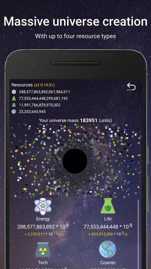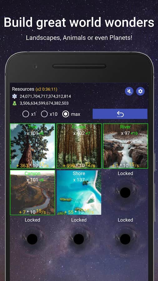 Tembel Dünya – en küçük parçacıklardan dev bir galaksiye kadar kendi dünyanızı inşa edeceğiniz Android için heyecan verici bir oyun. Ana göreviniz, insan, yıldız ve gezegen yaratabilmeniz için en küçük kuantum parçacıklarını ve mikroorganizmaları oluşturmak için gereken enerjiyi elde etmektir. En büyük evreni yetiştirin ve daha güçlü ve kudretli bir evren yaratmak için kara delikleri kullanın. Oyun, oynamadığınız zamanlarda bile ilerlemenizi sağlayan benzersiz bir oyun mekaniği ile sizi mutlu edecek. İnsanlık yaratın ve onların galaksiyi fethederek dev şehirler ve uzay gemileri inşa etmelerine izin verin.