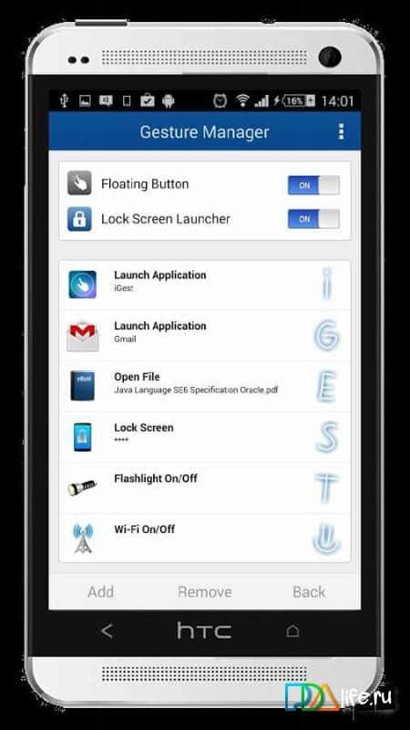 Jest kontrolü oldukça kullanışlı bir şey, özellikle jestler sezgisel ve alışılmış olduğunda. Ve eğer bunları kendiniz atayabiliyorsanız - bu daha da iyi, ayrıca tek parmakla yapılan hareketlerin yanı sıra çoklu dokunuşların da kullanılabilmesi harika. Bu uygulama, onları büyük bir sorun olmadan oluşturmanıza olanak tanır ve karakteristik yüzen düğme, jestlerle her yerden çalışmanıza olanak tanır.