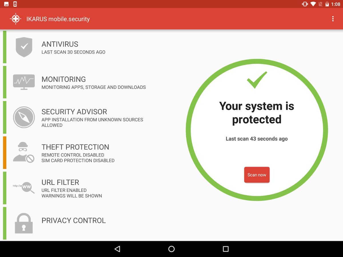 IKARUS mobil güvenlik – IKARUS Security Software'dan gelen harika bir Android uygulaması, cihazınızı her türlü zararlı yazılımdan maksimum koruma sağlamak için. Antivirüs otomatik olarak güncellenecek, indirilen dosyaları ve kurulu uygulamaları kontrol edecektir. Yani IKARUS mobil güvenlik ile akıllı telefonunuz güvenilir bir koruma altında.