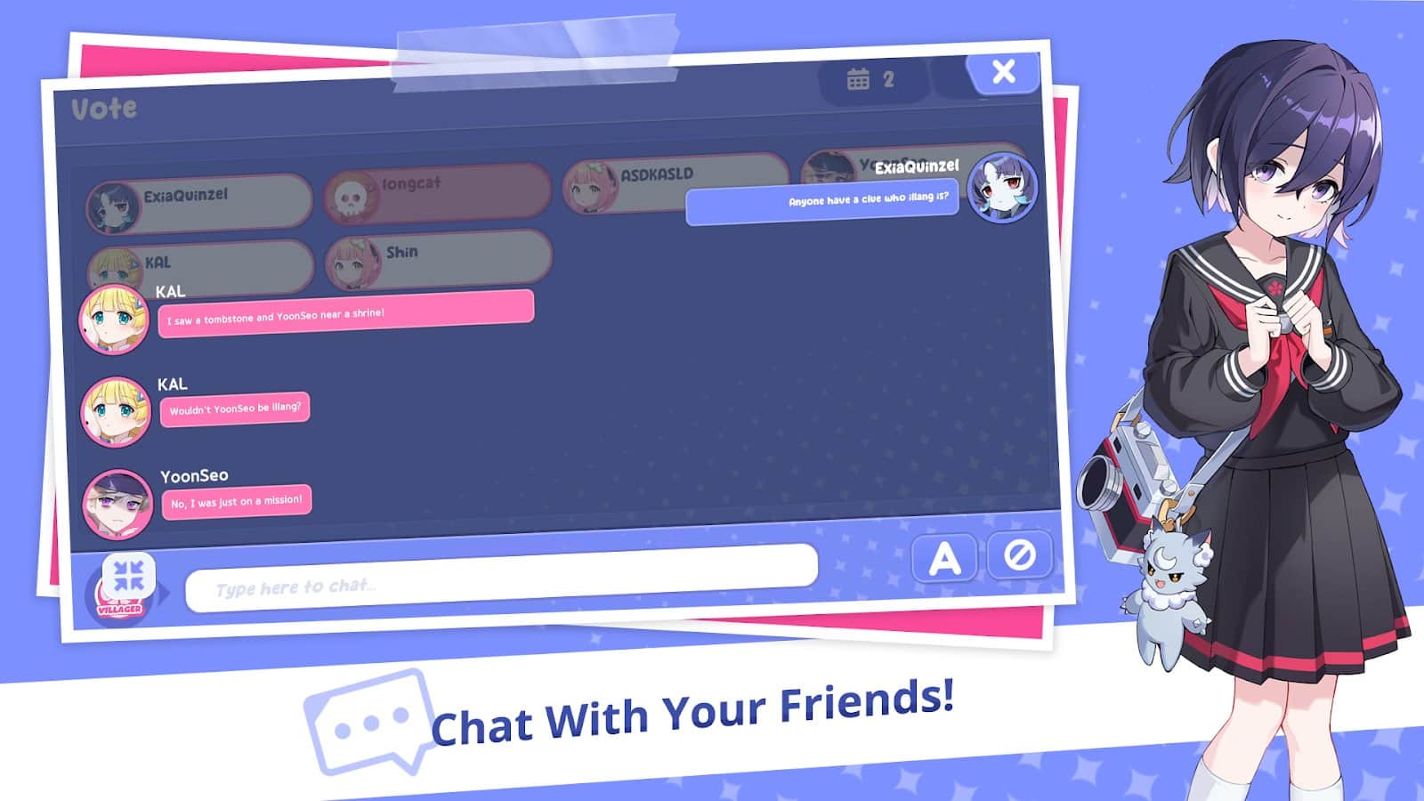 iLLANG - Kodzi köyünde, Ilhang adındaki kurnaz bir kurdun koyun postu içinde gizlendiği heyecan verici bir maceraya hazırlanın! Arkadaşlarınızdan oluşan ekibinizi toplayın ve onu yakalamak için çeşitli görevler ve mini oyunlar oynayarak izini sürün. Bu heyecan verici oyunda, sevimli ve çekici chibi tarzı karakterlerin tadını çıkarabilir ve "Çiçeklerin Açması", "Kedileri Bulma", "Hazine Avı" gibi çeşitli mini oyunlara dalabilirsiniz. Rolünüzü seçin ve Ilhang'ı yakalamak için benzersiz yeteneklerinizi kullanın. Ayrıca, karakterinizi gerçekten benzersiz kılmak için geniş bir kıyafet, aksesuar, evcil hayvan ve daha fazlasını özelleştirme seçeneği sizi bekliyor.