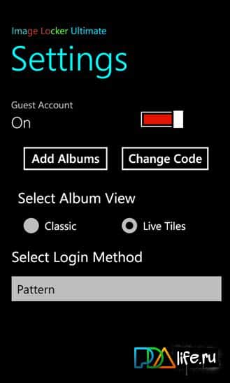 Görüntü Kilidi Ultimate – akıllı telefonunuzda bulunan video ve fotoğraf dosyalarını gizlemenizi sağlayan harika bir Windows Phone programıdır. Gizlenecek dosyaları saklamak için uygulama içinde albümler oluşturun. Her şeyi yerine geri koymak, onları yerleştirmek kadar kolaydır. Uygulama, Wi-Fi kullanmadan bilgisayardan dosya transferi yapma imkanı da dahil olmak üzere birçok yararlı özellik içerir.