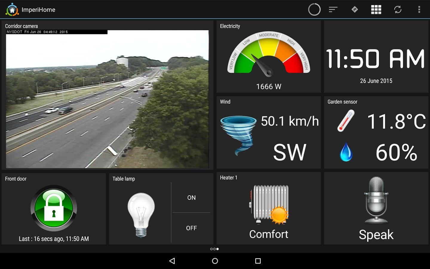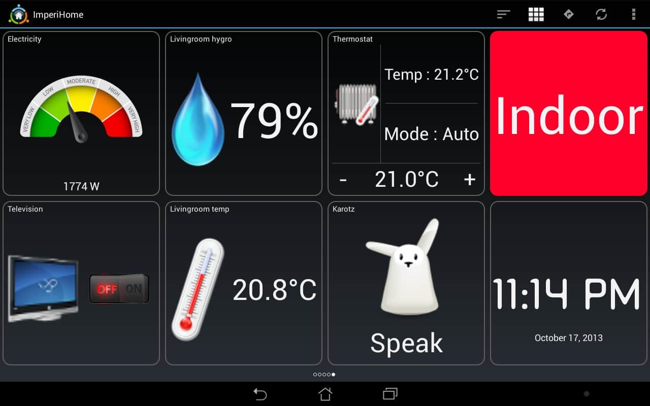 ImperiHome - bu uygulama ve android cihazınız ile akıllı evi yönetebilirsiniz. Evde bu amaçla tablet kullanılabilir, dışarıda ise akıllı telefon. Uygulama ses tanıma özelliğini destekler.