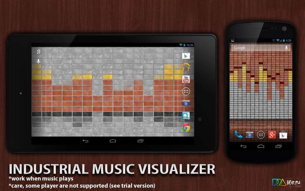 Endüstriyel Görselleştirici / Endüstriyel Müzik Görselleştiricisi – son derece ilginç görünen ve müzik görselleştiricisi olan güzel canlı duvar kağıtları, Android cihazınız için. Ayarlarda boyut, renk ve tema seçebilir, ayrıca akıllı telefonunuzun/tabletinizin ekranını şık ve özgün kılacak birçok başka şeyi de ayarlayabilirsiniz.