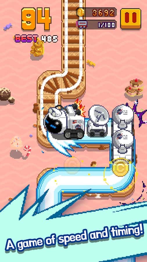 Sonsuz Tren – android için piksel arkadaşı, burada eğlenceli bir treni yöneteceksiniz. Kıvrımlı demiryolu boyunca gidin ve hareketlerinizi mümkün olduğunca dikkatli yapın. Oyundaki ana amacınız, belirli bir süre içinde yolun sonuna ulaşmaktır. Oyundaki pist sürekli yön değiştirerek ilerleyecek, bu yüzden dikkatinize ve mükemmel reflekslerinize güvenin. Ayrıca, raylarda sizi takip eden düşmanlar olacak, onları yakalatmayın ve tuzağa düşmeyin. Oyunun ilginç seviyelerini bir bir geçin ve kendinize yeni eğlenceli karakterler keşfedin.