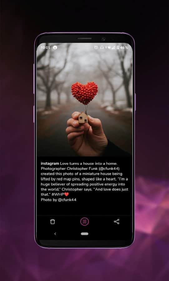 Beğendiğin fotoğrafları Instagram'dan sadece birkaç tıklama ile indirebileceğin basit ve kullanışlı bir uygulama. Akıcı ve güzel tasarım, rahatsız edici reklamların olmaması ve kullanım kolaylığı - bu tür bir uygulamanın başarısının garantisi!