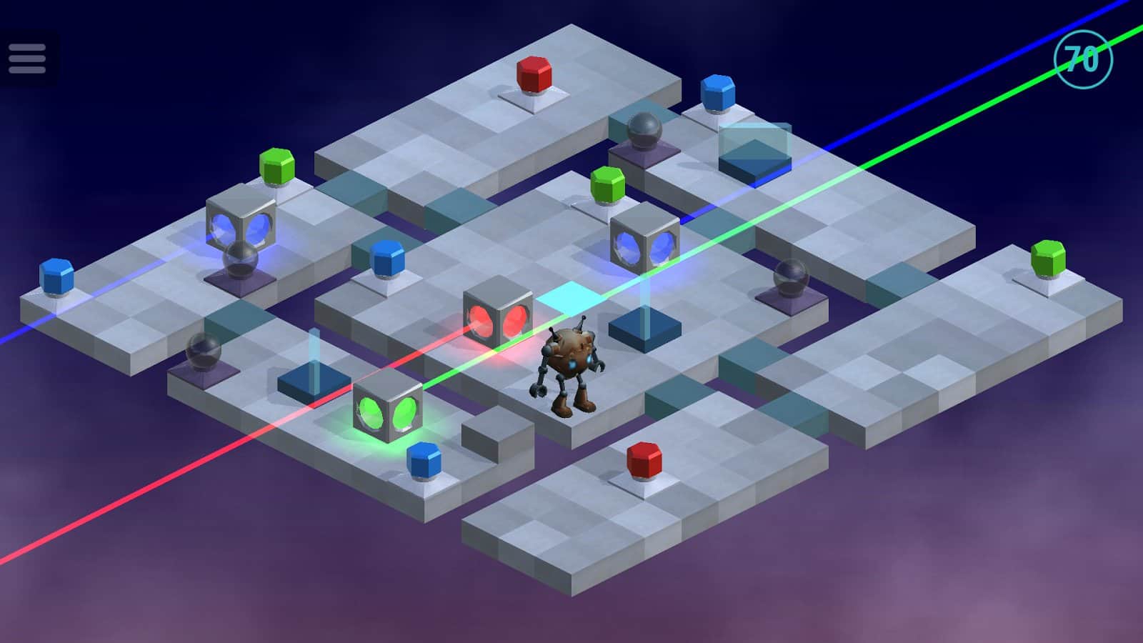 Gökyüzüne - Android cihazlarımız için ilginç ve oldukça sıradışı bir bulmaca. Oyunda mantıksal düşünme ve yaratıcı potansiyelinizi kullanmanız gerekecek. Oyun alanında küçük bir robot yardımıyla, farklı renklerdeki nesneleri yerleştirerek ışık lazerlerinin bir zincirini kapatmalısınız.