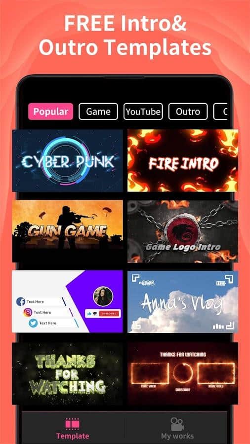 Intro Maker - video intro outro - YouTube kanalınız, oyun yayınlarınız veya sosyal medya için hızlı bir şekilde giriş ekranları, bitiş ekranları ve diğer içerikler oluşturun. Giriş stillerinin birçok çeşidi: İçeriğinizin temasına uyacak şekilde Game, 3D, Cool, Particle, Esport Logo, YT, Cute, Glitch, Vlog, Aesthetic, Magic, Wizard, Cooking gibi çeşitli giriş stillerinden seçim yapabilirsiniz.