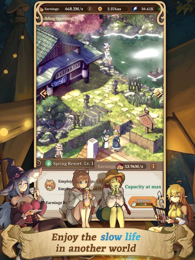 Isekai: Yavaş Yaşam - öldünüz ve cennete ya da cehenneme gitmeniz gerekiyordu... Ama gökyüzünde bir hata yapıldı, bu yüzden ikinci bir yaşam sürmeniz için tamamen farklı bir dünyaya gönderildiniz, burada her şey sakin ve huzurlu olacak. Kişisel arazinizde çeşitli tarım ürünleri yetiştirin, ardından bunları burada çok popüler olan mutfağınızda kullanın. Farklı ırklardan kızlardan bir harem oluşturun, böylece ev işlerinize yardımcı olurlar. Çocuklar edinip onların eğitimleriyle ilgilenin.