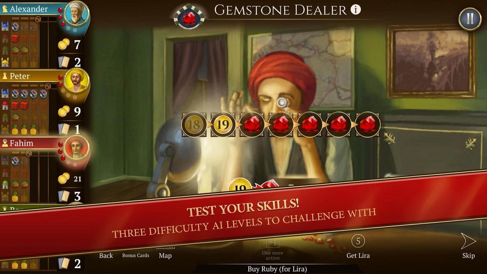 İstanbul: Dijital Sürüm – Android için bir strateji oyunu, burada dört asistanı yönetecek ve ürünleri taşıyacaksınız. Bu oyunda, mümkün olduğunca fazla mücevher kazanmak için dört asistanın eylemlerini kontrol eden bir tüccar rolünü üstleneceksiniz. Asistanlarınızı İstanbul'un farklı köşelerine ve pazara taşıyın ve ürünleri taşıyarak tüccarınıza para kazandırın. Yol boyunca kalıntıları toplayın ve tüccarınızı İstanbul'un en zengin insanı yapın. Haritadaki 16 farklı yer arasında arabaları hareket ettirin ve rakiplerinizi alt etmek için her şeyi mümkün olduğunca hızlı yapın. Daha fazla ürün taşımak için arabalarınızı güncelleyin ve artırın.