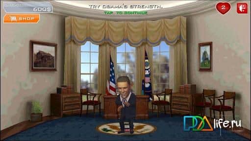 Obama'yı döv! - Beyaz Saray'ın veya Amerika Birleşik Devletleri Başkanı Barack Obama'nın eylemlerinden memnun olmayanlara yönelik bir Android arcade oyunu sunuldu. Elinizde mermi ve kesici silahların yanı sıra dövme için çeşitli yöntemler bulunmaktadır. Ana rol ise dövülmek için nesne olarak Obama'ya verilmiştir. Anlamı basit - ne kadar çok zarar verirseniz, o kadar çok para kazanırsınız!