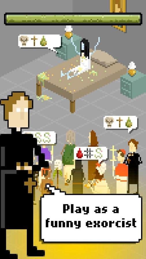 Korkutucu ve son derece ilginç arcade oyunu «The Exorcism», size ŞEYTA'nın sürgün sürecinin özünü gösterecek. Karakterlerin ruhlarını kurtarmak sizin elinizde, bu yüzden akıllıca hareket edin ve kahramanları kurtarmak için doğru kararlar alın. Şeytanı ve iblisleri ruhlarından temizlemek için, talihsiz insanların içinden iblisleri çıkarın. Haçları toplayın ve yeni karakterlerin kilidini açın. Uygulama, bizi çocukluğumuzdaki oyunlara geri götüren pikselli sekiz bit grafiklerle doludur! Ama en çok beklenen özellik - ağır metal müziği eşliğinde ortaya çıkan gerçek Şeytan… Heyecan arayanlar için bu oyun deneyimi kesinlikle hoşlarına gidecek!