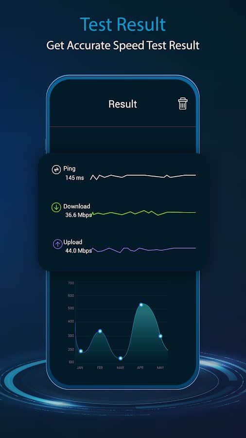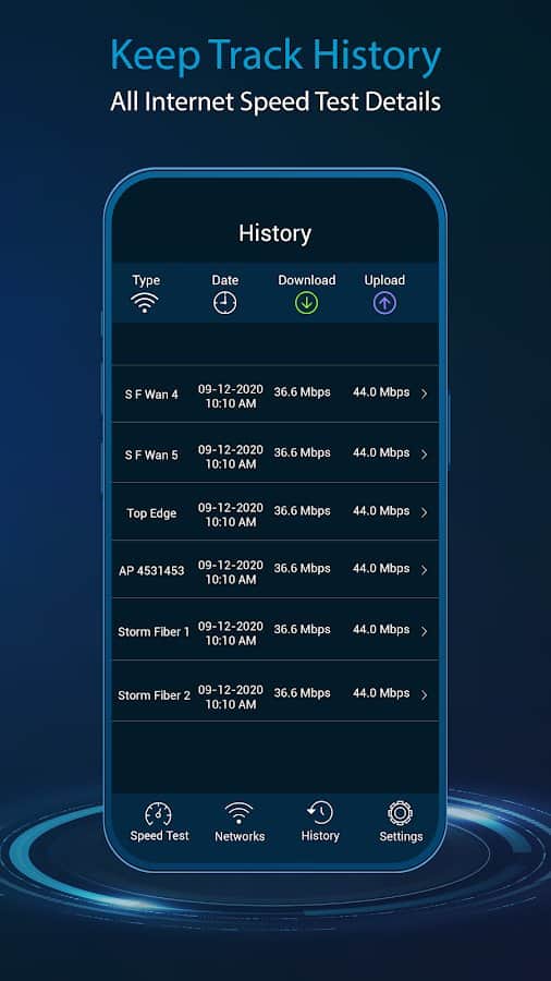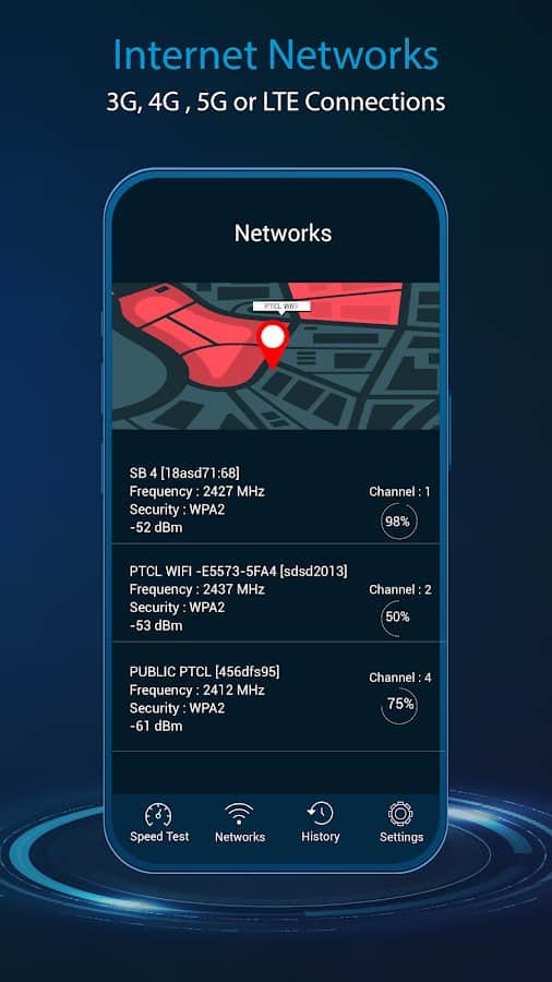 İnternetteki performansınıza dayanarak, Wi-Fi sinyal hızının tam bir analizini yapma imkanı vardır. Veriler alındığında, ping hızı, ağ geçidi, sinyal gücü, ağdaki konum, internetinizi kullanan kullanıcılar gibi bilgiler görüntülenecektir. Sonuç olarak, Ağ, Sinyal Gücü, Hız, IP adresi, Frekans, Ağ Geçidi, Sunucu Host Şehri, Şehir, Ülke hakkında bilgilerin yer aldığı ayrıntılı istatistikler ve ağ bilgileri alacaksınız. Geçmişi takip edin ve güvenilir kaynaklara bağlanın.