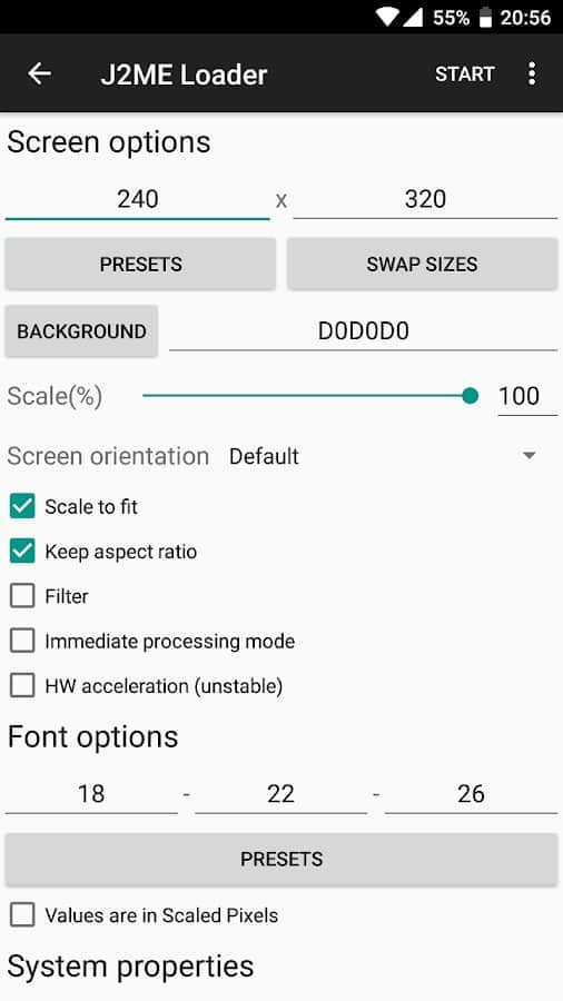 J2ME Yükleyici - J2ME (Java 2 Micro Edition) uygulamalarını Android'de çalıştırmanıza olanak tanıyan bir emülatördür. Şu anda çoğu 2D oyunu desteklemektedir, 3D desteği mevcuttur, ancak bazı sınırlamalar vardır (Mascot Capsule 3D üzerindeki oyunlar çalışmamaktadır). Oyunlarda rahat bir kontrol sağlamak için sanal klavye desteği ve her uygulama için özel ayarlar bulunmaktadır. Görüntünün çok küçük veya çok büyük olmaması için ölçekleme desteği mevcuttur.