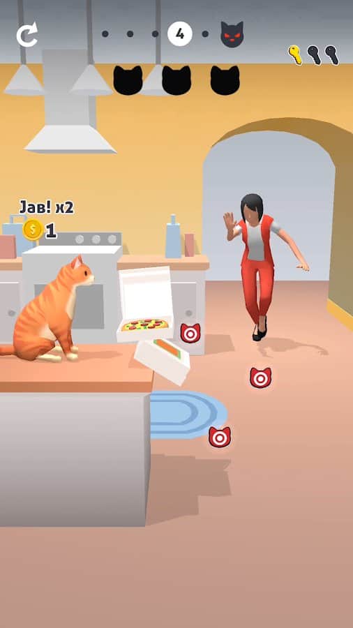 Jabby Cat 3D - kedinin hayatı sıkıcı gündelik eylemlerden oluşuyor, bu yüzden bazen bu sevimli hayvanlar eğlenmek ve sahiplerini sinirlendirmek istiyor. Oturma odasına, banyoya, mutfağa gidin ve eğlenceli bir gösteri başlatmak için rahat bir pozisyon alın. Önünüzde belirli mekanlara özgü nesneler olacak, işte bunları aşağıya atmalısınız. Sorun şu ki, sahiplerinin size ulaşmadan önce tüm nesneleri yere atmayı başarmalısınız. Yıldızları toplayın, farklı renkleri toplayın ve seviyeleri keyifle geçin.