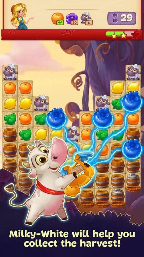 Jacky's Farm – Android için üçlü eşleştirme türünden bir oyun, burada bir çiftçi olacaksınız ve çeşitli görevleri yerine getireceksiniz. Bu oyunda, Jacky'ye çiftliğine gelen ve onu soyan dev hırsızı yakalamasında yardım edeceğiniz heyecan verici bir yolculuğa çıkacaksınız. Devin peşinden fasulye dalına tırmanın ve ödüller ve bonuslar kazanmak için üç veya daha fazla nesneyi bir araya getirin. Bu oyunu arkadaşlarınızla oynayın ve güzel grafiklerin ve heyecan verici oyun deneyiminin tadını çıkararak boş zamanınızı keyifle geçirin. Masallar dünyasını yeniden keşfedin ve sebze yetiştirin.