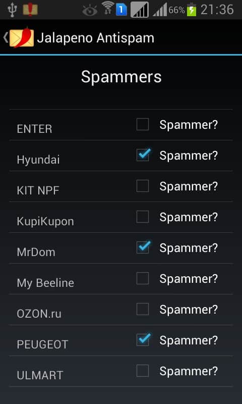 Jalapeno Antispam – Jalapeno Technologies geliştiricisinden sms-spam'a karşı koruma sağlayan iyi, basit ve kullanışlı bir programdır. Hızlı erişim, kullanışlı bir arayüz sunar ve belirtilen özelliklere göre çalışır.