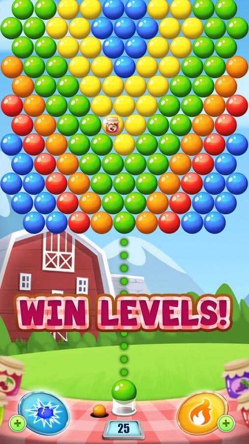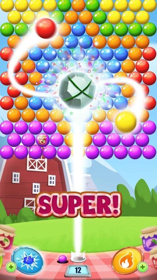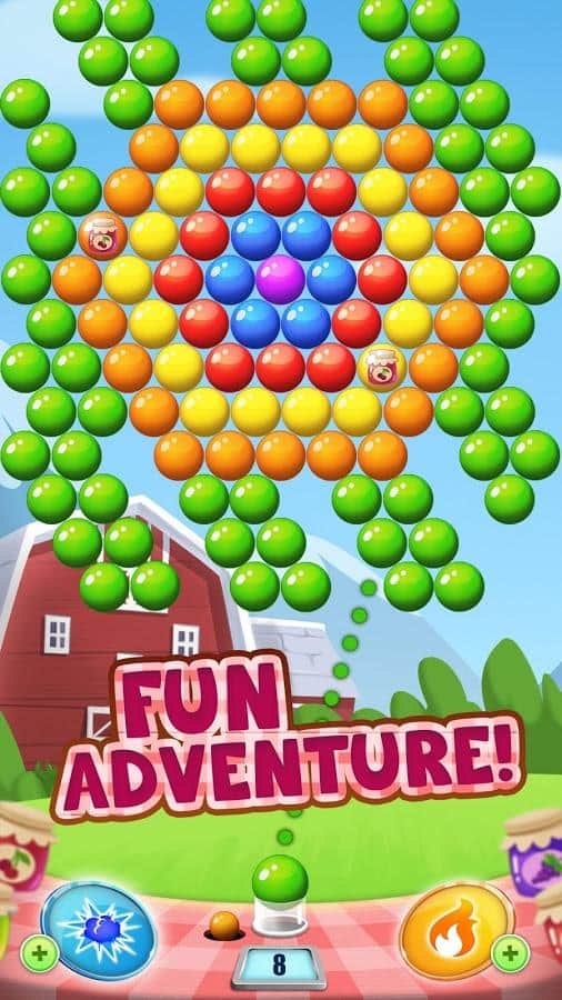 Reçel Yolculuğu Patlat – Android için bir üçlü eşleştirme oyunu, burada çiftçi Joe'ya mümkün olduğunca fazla reçel elde etmesine yardımcı olacaksınız. Bu oyunda göreviniz, üstteki baloncukların kümelerine renkli baloncuklarla ateş etmek ve onları patlatmaktır. Aynı renkten üç veya daha fazla baloncuk toplayarak patlatmaya çalışın ve böylece puan kazanırsınız. Baloncuğun uçuş rotasını hedefleyin ve en büyük baloncuk grubunu patlatacak doğru yolu seçin. Bu oyunun heyecan verici seviyelerini geçin ve her biri için üç yıldız kazanın. Rekorlar kırın ve birçok bonus ile güçlendirmeyi uygulayın.