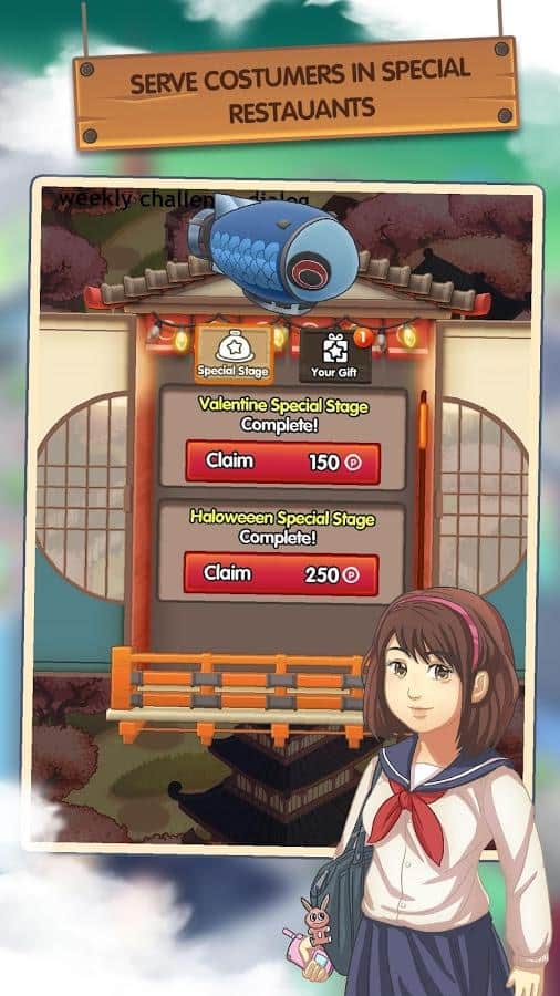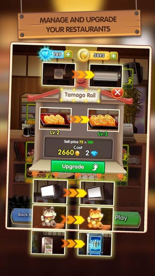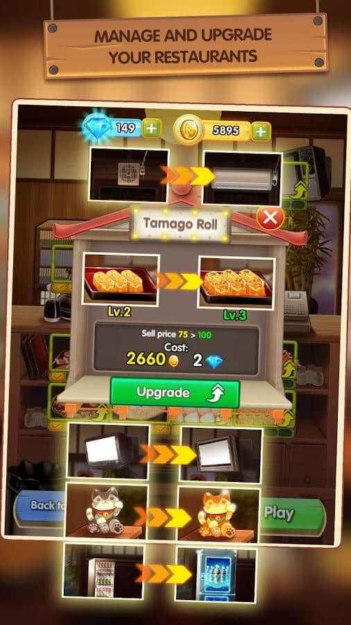 Japonya Yiyecek Zinciri – Android için bir oyun, burada küçük bir Japon restoranının sahibi olacaksınız. Bu oyunda ana göreviniz, çeşitli yemekler hazırlamak ve müşterilerinize hizmet etmek olacak. Tüm mutfak yeteneklerinizi gösterin ve gastronomi şaheseri unvanını hak eden lezzetli yemekler hazırlayın. Sıradan bir aşçı olarak kariyerinize başlayın ve tüm Japonya'da ünlü bir şef olun. Sushi, bento, onigiri ve Japonya'nın diğer popüler yemeklerini hazırlayın ve ustalığınızı sürekli geliştirin. Yeni tarifler keşfedin, çeşitli yemekler yaratın ve Japonya'nın dört bir yanında yeni restoranlar açarak seyahat edin. Misafirlerinizi siparişlerini almak için uzun süre bekletmeyin, ve onlar sizi cömert bahşişlerle ödüllendirsin.