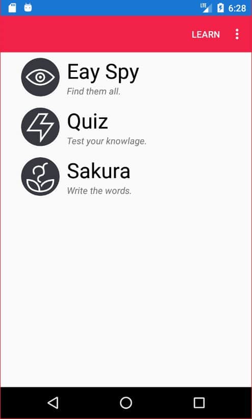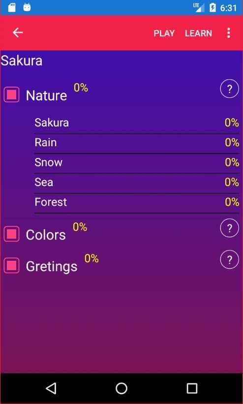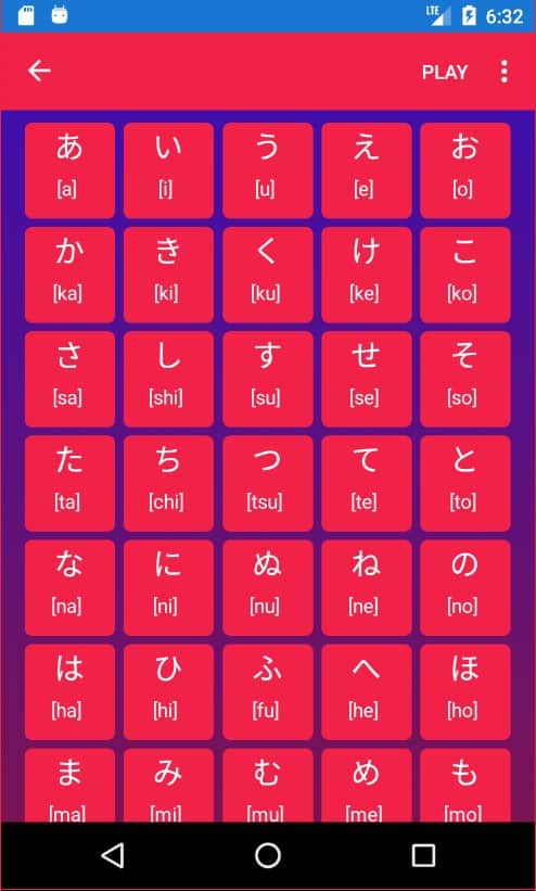Japonca Öğrenme uygulaması, Japon hece alfabesini ve kelimeleri oyun unsurları aracılığıyla öğrenmenin basit bir yoludur.
