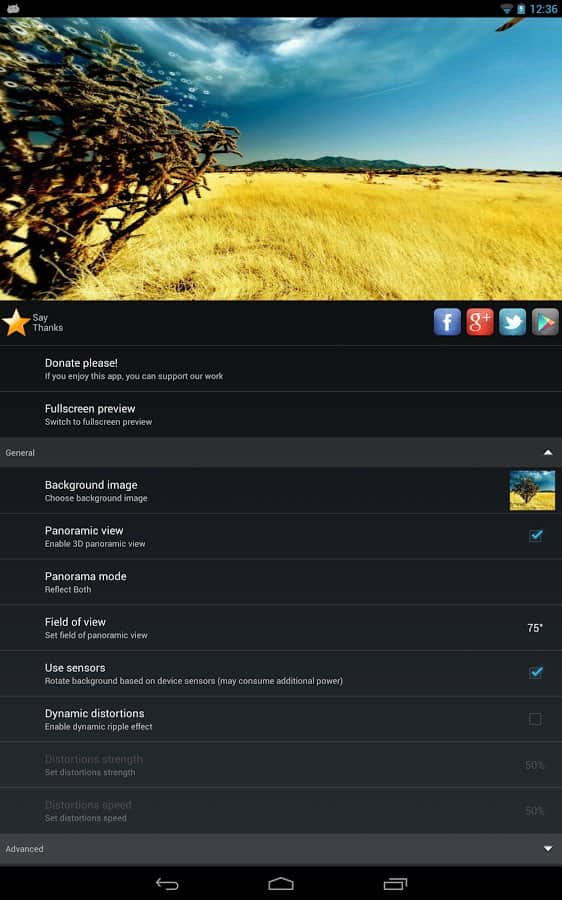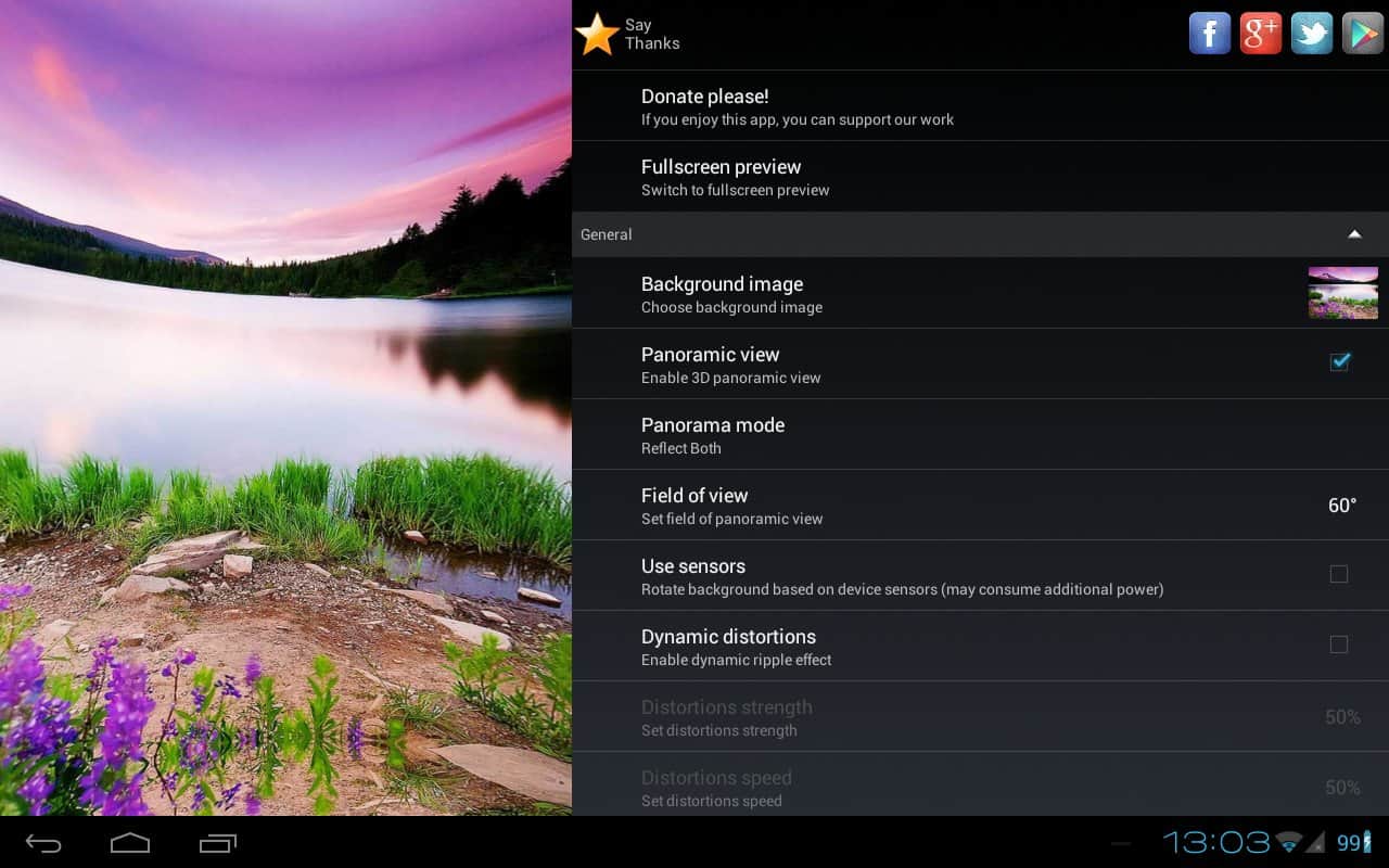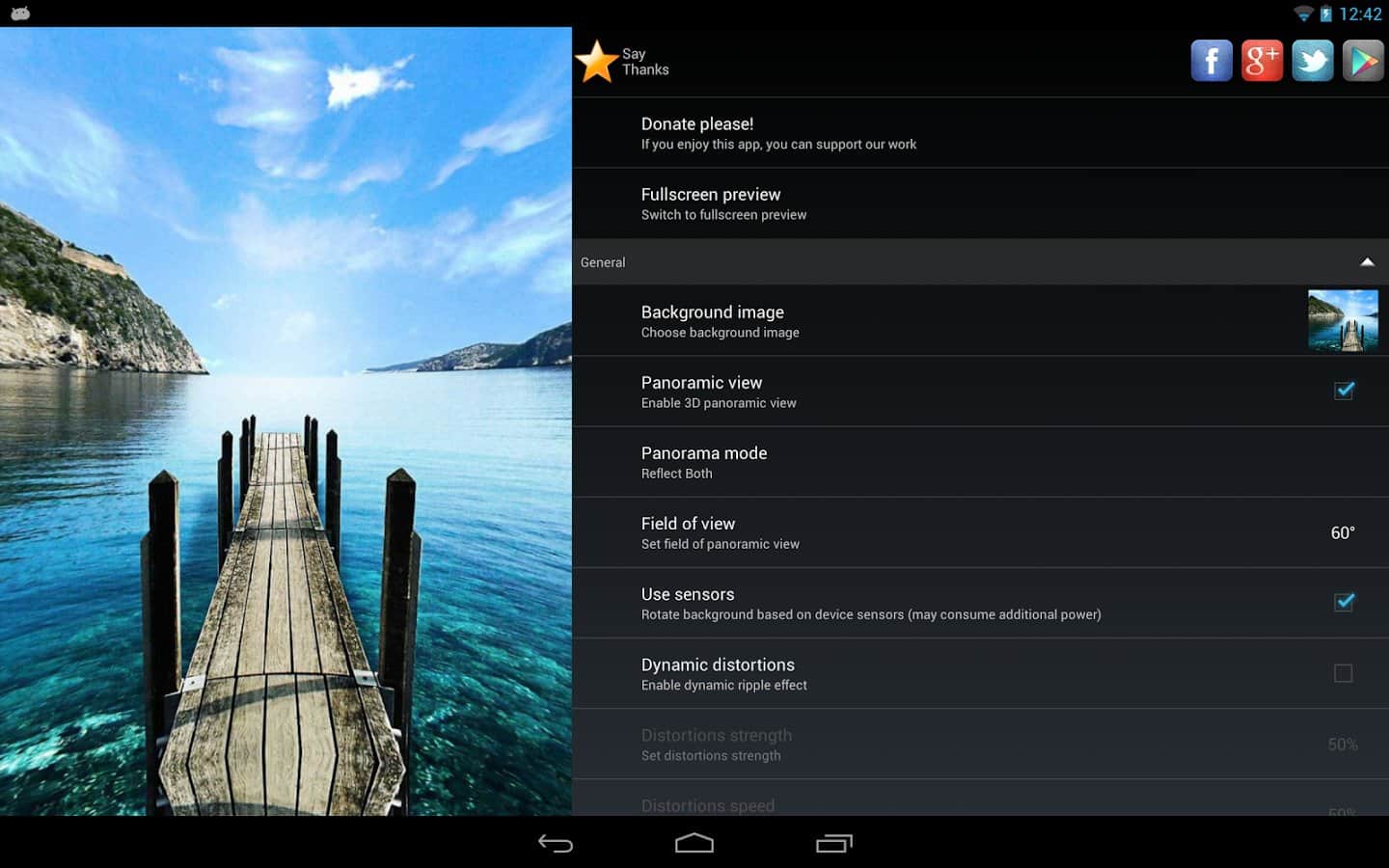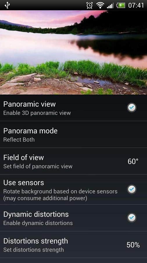 Panoramik Ekran – güzel bir uygulama (canlı duvar kağıtları), normal fotoğraflardan, galeri resimlerinden veya sıradan duvar kağıtlarından 3D panoramalar oluşturur. Çok sayıda ayar kullanarak sadece panoramalar oluşturmakla kalmayıp, fotoğraflara dinamik bozulma efektleri, slayt gösterileri ve daha fazlasını ekleyebilirsiniz! İndirin!
