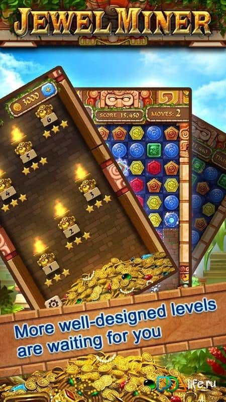 Mücevher Madencisi – dört farklı değerli taş toplama moduyla "üçlü eşleştirme" oyunu. Bu oyunda, değerli taşları bir araya getirerek hazineye ulaşmaya çalışacağınız heyecan verici bir maceraya atılacaksınız. Oyunda dört farklı oyun modu bulunmaktadır: