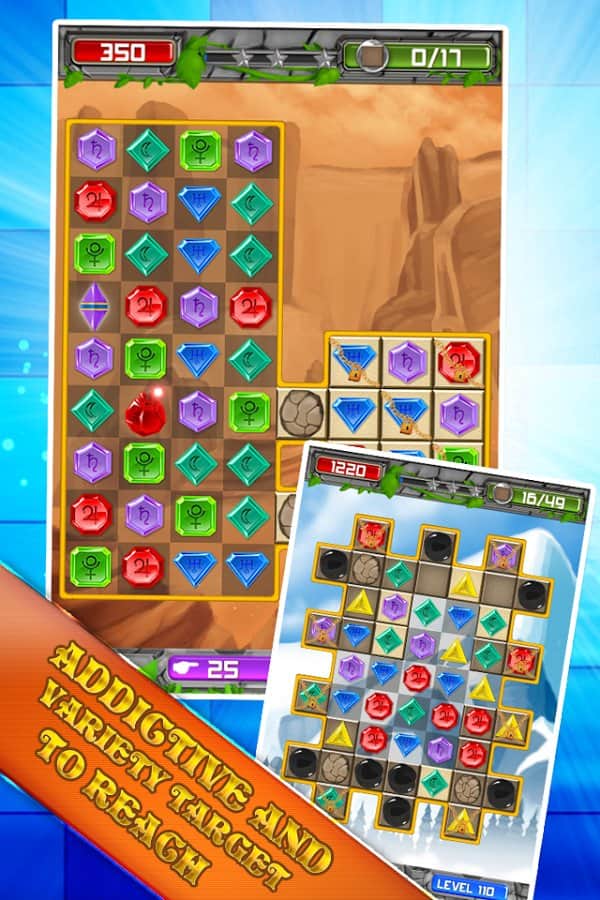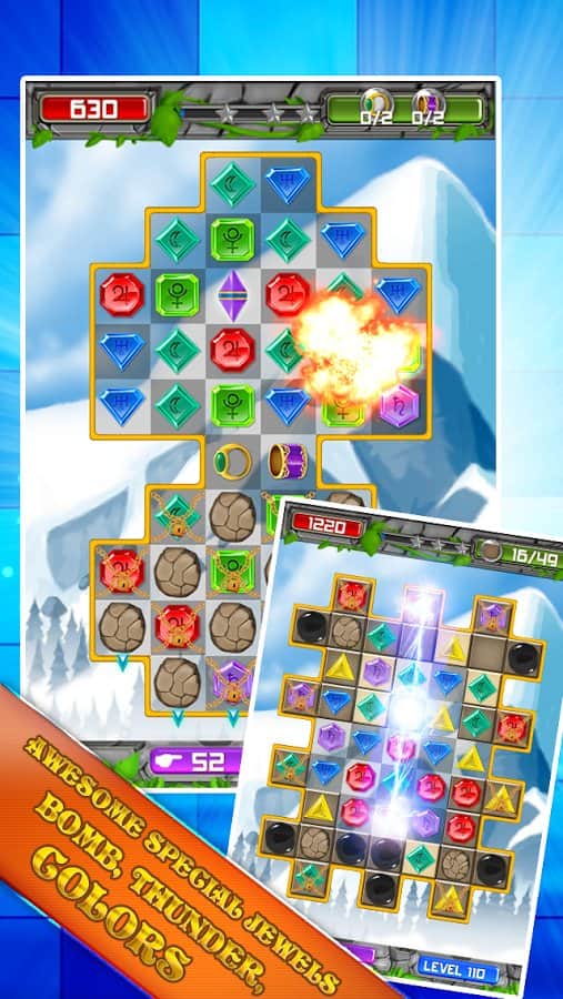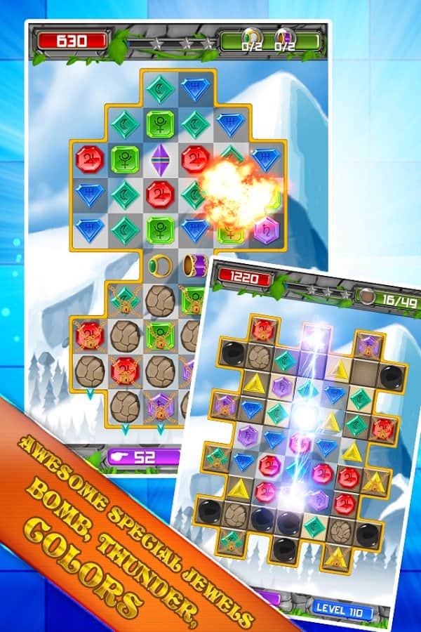 Mücevherler Macerası / Jewels Adventure - Üç bir arada türünde bir başka bulmaca. Sizi, farklı hava koşullarının ve çeşitli engellerin bulunduğu çeşitli topraklarda yolculuk yapacağınız inanılmaz derecede güzel yüz yirmi seviyeyi bekliyor. Ayrıca oyun, sonuçlarınızı arkadaşlarınızla paylaşabilmeniz veya onlarla rekabet edebilmeniz için internet bağlantısını desteklemektedir.