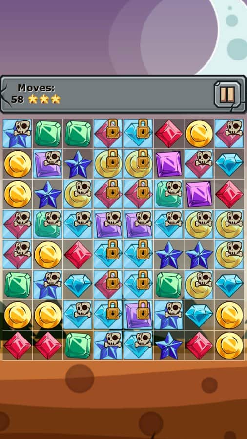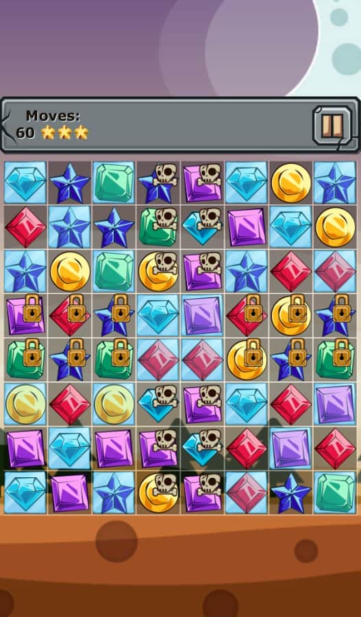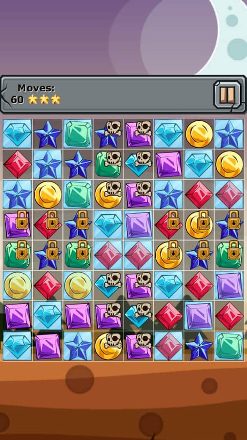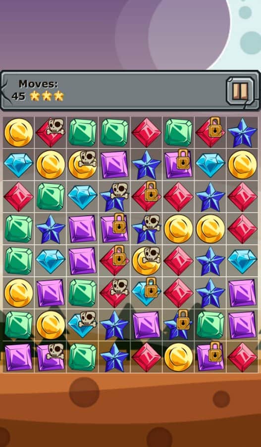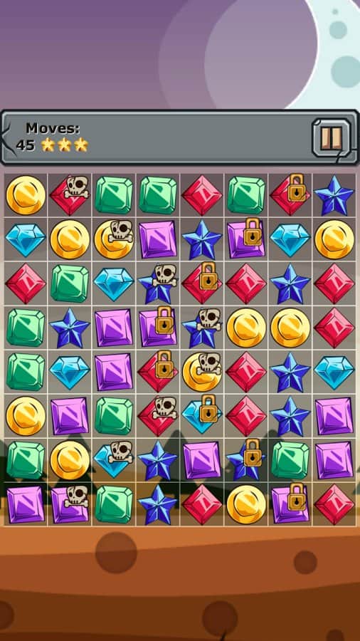 Mücevherler ve Unsurlar - üçlü eşleştirme türünde bir oyun, sizi 250'den fazla seviyenin beklediği bir dünya. Aynı renkteki taşları sıraya dizin ve oyun alanından kaldırın, ayrıca size ekstra bonuslar verecek kemik ve kilit simgeleriyle blokları yok edin. Element taşları yaratmak için taşları T veya L harfi şeklinde dizin ve yalnızca onlara ait olan donmuş hücreleri oyun alanından kaldırın. Oyun, canlı grafikleri ve kolay oynanışı ile sizi mutlu edecek.