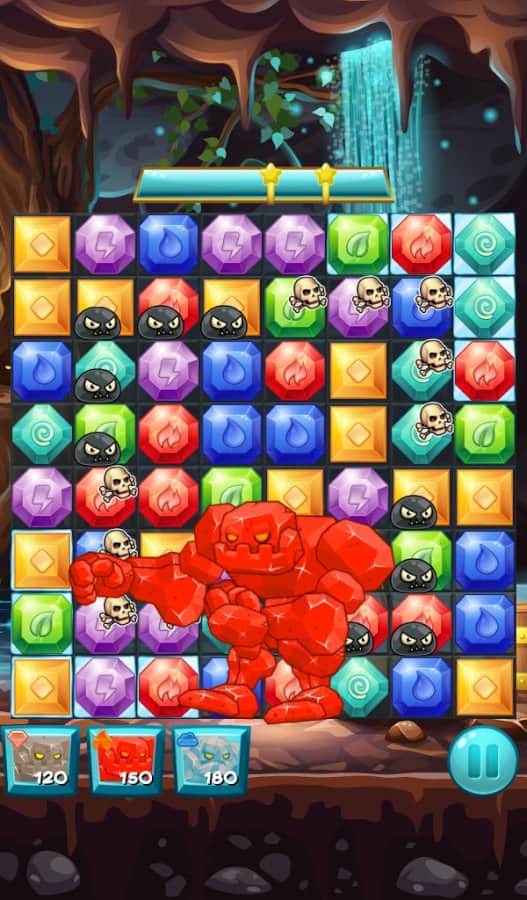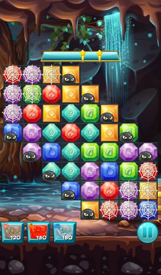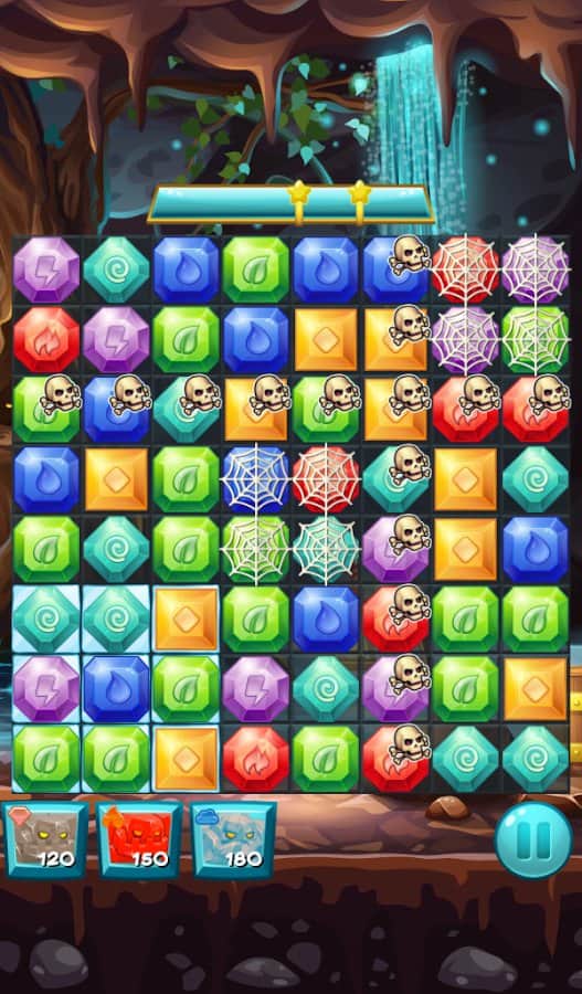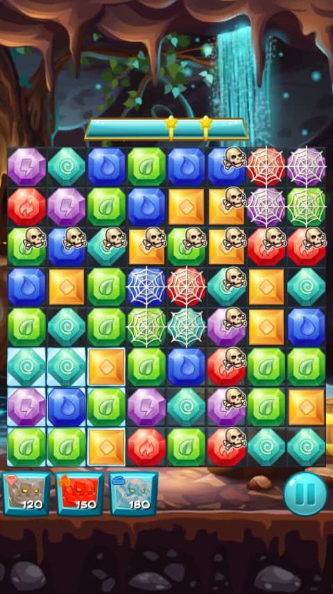 Mücevherler - 3 Eşle Oyun - üçlü eşleştirme türünden heyecan verici bir oyun, burada değerli taşları sıralarda toplamanız gerekiyor. Bu oyunda, çeşitli renklerde taşların bulunduğu bir alana gireceksiniz, ancak bunların yanı sıra donmuş hücreler, örümcek ağları, antik kemikler ve hedefinize ulaşmanıza engel olacak can sıkıcı baloncuklar da var. Üç veya daha fazla taşı bir sırada birleştirin ve oyun alanını donmuş hücrelerden ve örümcek ağlarından temizleyin. Antik kemikleri yok etmek için özel sihir kullanın ve aynı renkteki taşları sıralarda, T veya L harfi şeklinde birleştirerek, tüm düşmanları yok edebilen elemental taş ödülü kazanın. Tüm zihinsel ve mantıksal becerilerinizi kullanın ve zor bulmacaları çözün.