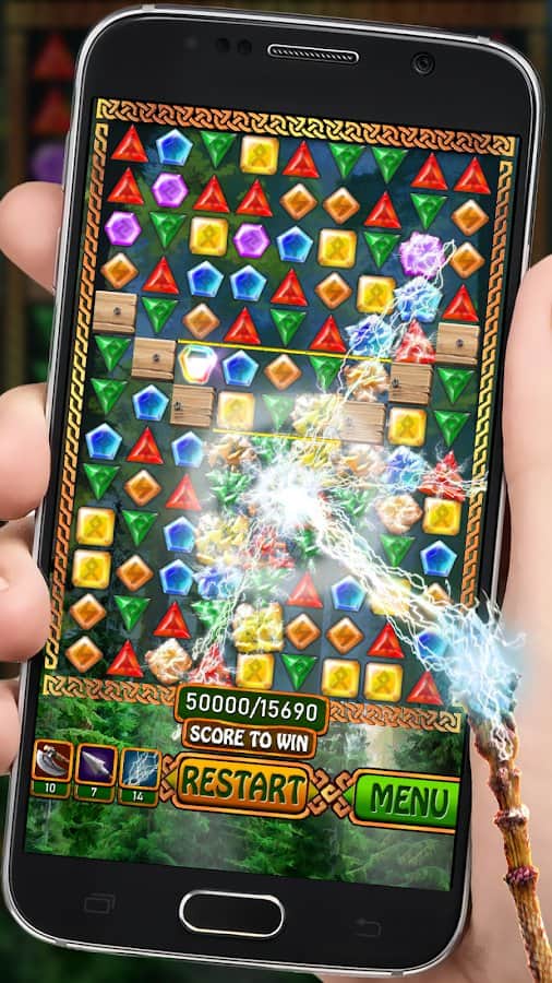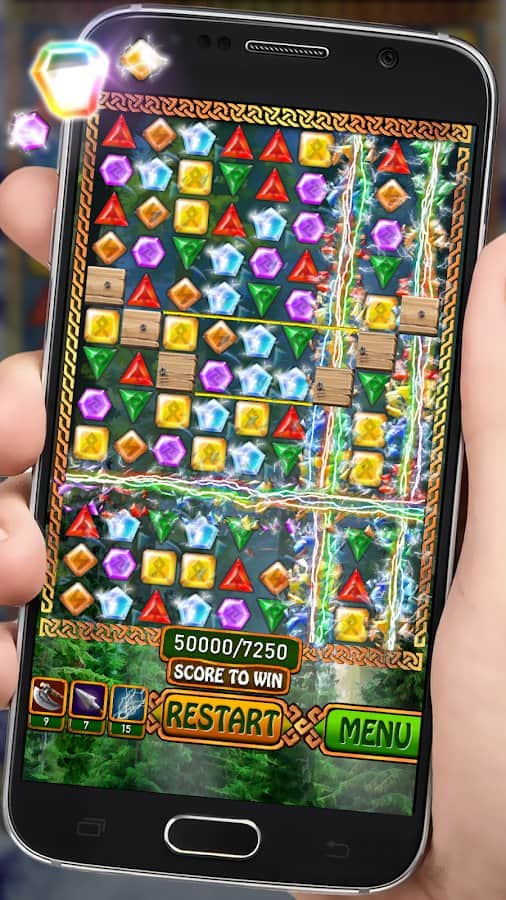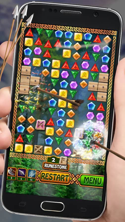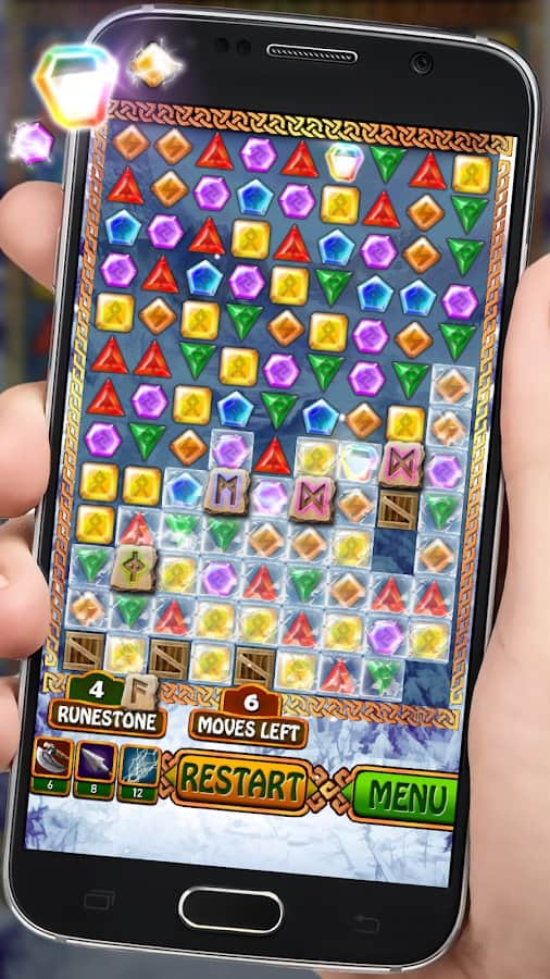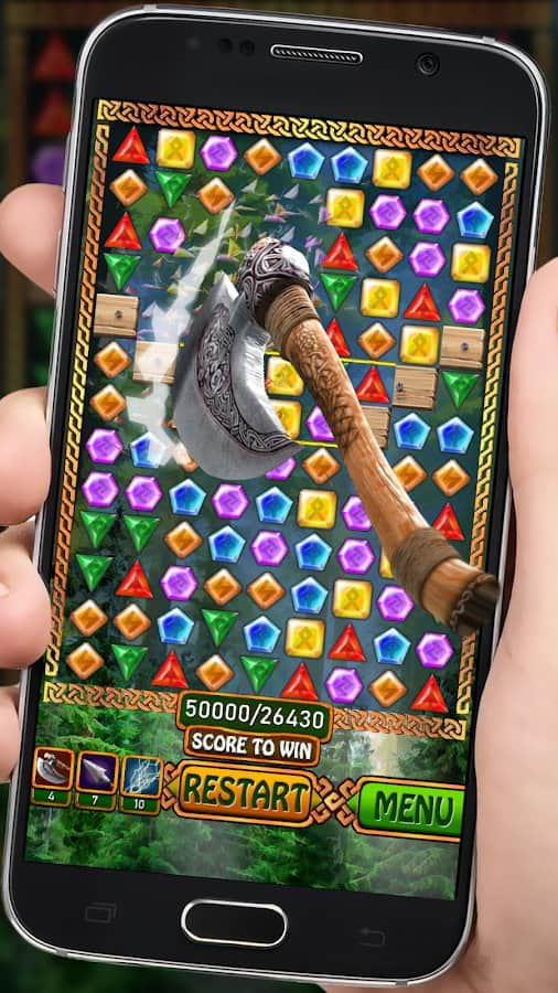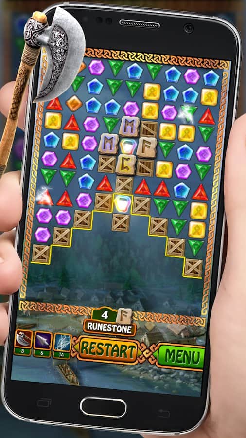 Mücevherler - Viking Taşları, Android için bir üçlü eşleştirme oyunudur, burada farklı renklerdeki kristallerden diziler oluşturacaksınız. Bu oyunda, Viking topraklarında heyecan verici bir yolculuğa çıkacak ve onlarla birlikte sayısız bulmacayı çözeceksiniz. Üç veya daha fazla kristalden diziler oluşturun ve patlamaların zincirleme tepkimesini başlatın. Şanslı kombinasyonlar oluşturun ve zor durumlarda yay, baltayı veya sihri kullanın. Sizi ilginç görevlerle sevindirecek yeni seviyeleri keşfedin. Oyun, oyuncuları canlı grafikleri, büyüleyici efektleri ve sihirli güçlendirmeleri ile memnun edecek.