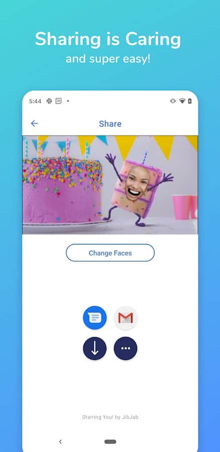 JibJab: Eğlenceli Video Yapıcı - Dünya genelinde 84 milyondan fazla insan bu uygulamayı ilginç kartlar, video klipler, GIF'ler ve daha fazlasını oluşturmak için kullanıyor! Telefonunuzun kamerasıyla kendi yüzünüzü çekin ve olmak istediğiniz şablonu seçin, böylece otomatik olarak popüler bir yıldız, kovboy, pasta parçası, ayçiçeği veya başka bir karaktere, nesneye dönüşüyorsunuz. Doğum günü, Noel, anneler ya da babalar günü, Paskalya, Yeni Yıl, Cadılar Bayramı, Sevgililer Günü ve daha fazlası için gerekli dosyaları bulun.