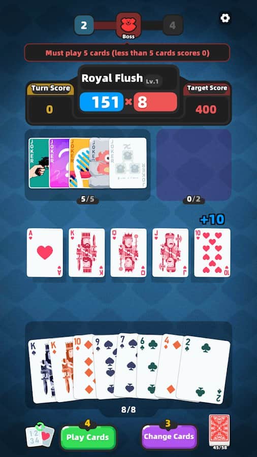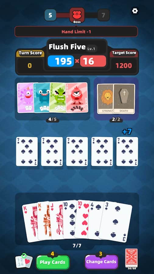 Joker Kart Oyunu: Balatro - destelerin toplanması konusunda düşüncelerinizi altüst edecek heyecan verici bir kart oyunu. Pokerden ilham alan bu oyun, sonsuz olanaklar ve sizi bırakmayacak inanılmaz derecede eğlenceli bir oyun süreci sunuyor. Amacınız, rakiplerinizi alt etmek için joker kartlarının vahşi kartlarını kullanarak öldürücü poker kombinasyonları oluşturmaktır. Her Balatro kartının, oyunun seyrini tamamen değiştirebilecek kendine özgü bir yeteneği vardır, bu da sizi gergin tutar ve daha fazlasını istemenize neden olur. Seviyeleri geçtikçe, efsanevi kart oyuncuları ve onların gizli desteleri dahil olmak üzere giderek daha zorlayıcı rakiplerle karşılaşacaksınız.