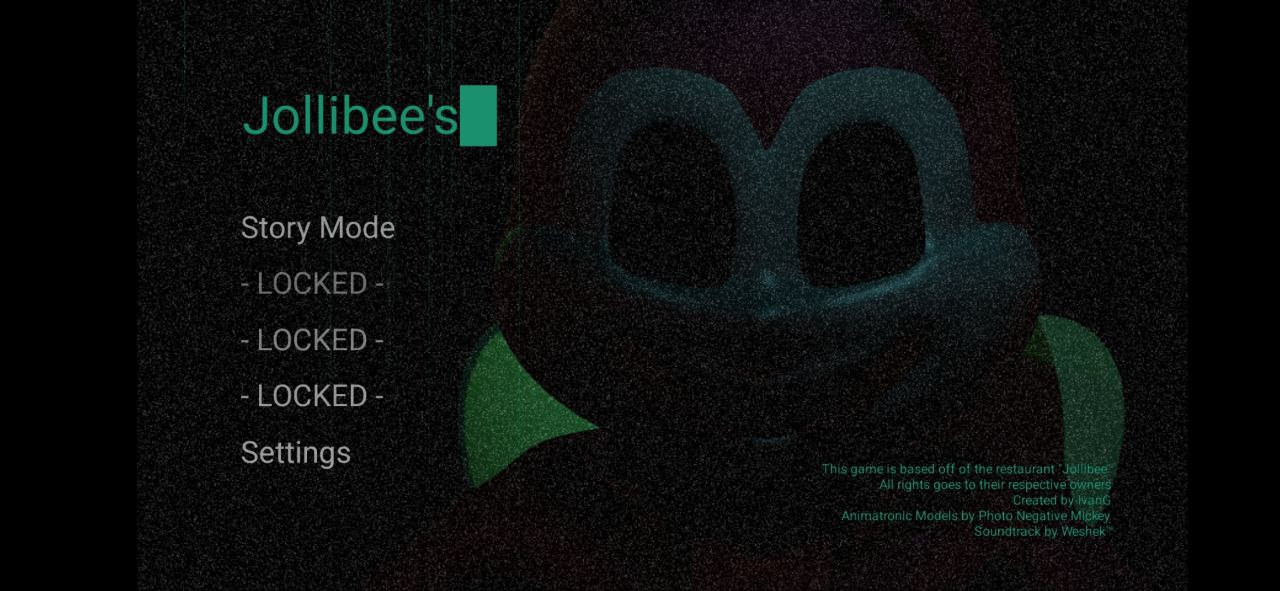 Jollibee's — eğlencenin gizemlerle buluştuğu bir yer! Popo ve animatronik arkadaşlarıyla birlikte kutlama, oyun ve lezzetli yemek atmosferine dalın. Oyun odasında eğlenin, doğum günlerini kutlayın ve gösterilerin tadını çıkarın... ama dikkatli olun: her şey göründüğü kadar güllük gülistanlık olmayabilir. Unutmayın: Jollibee’s’e adım attığınızda, hem fiziksel hem de psikolojik tüm riskleri kabul ediyorsunuz!