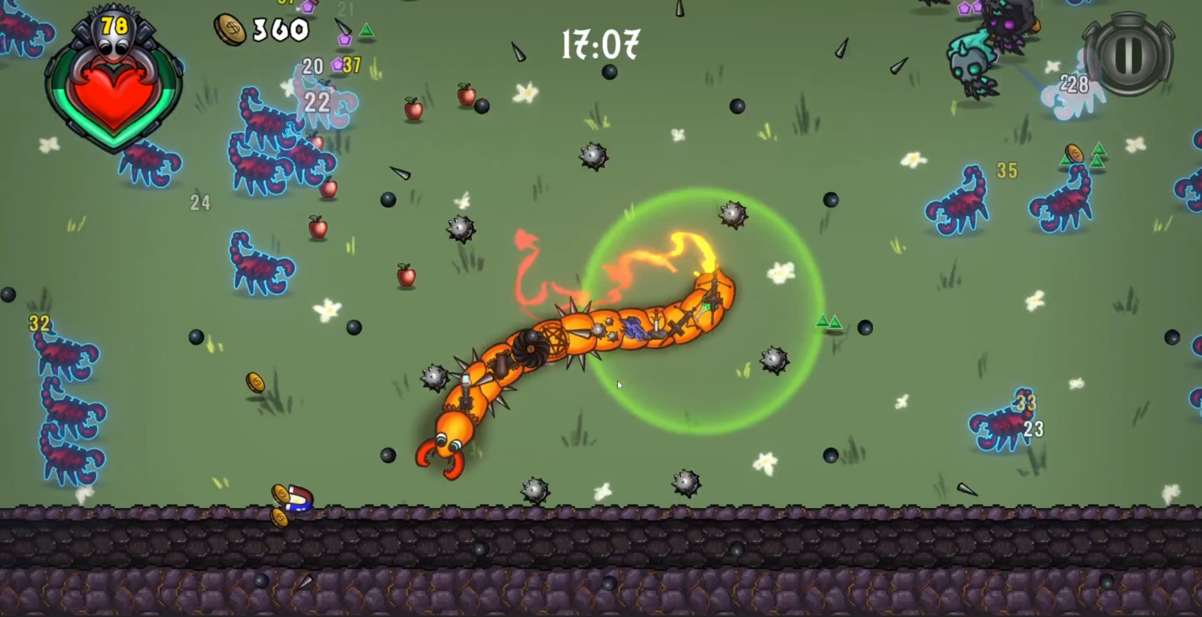 Jormungand — vampir temalı dinamik bir aksiyon oyunu, burada bir savaş yılanını yönetiyorsunuz ve bu yılan canlı bir cephaneliğe dönüşüyor. Yılanın her bir segmenti ayrı bir silah olarak otomatik olarak saldırıyor. Yılan ne kadar uzun olursa, saldırı seti o kadar ölümcül oluyor. Sonsuz düşman dalgalarının içinden geçin, güçlendirmeler toplayın, silah türlerini birleştirin ve benzersiz yapılar oluşturun. Burada hayatta kalmak taktik, gelişim ve sürekli risk demek; tek bir doğru kombinasyon her şeyi çözebilir.