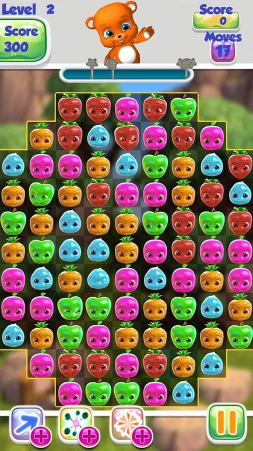 Sulu Meyveler Eşleşme 3 Patlat – sulu meyvelerden sıralar oluşturun ve ayıcık Teddy'ye mümkün olduğunca fazla meyve suyu elde etmesine yardım edin. Ayıcık Teddy, sulu ve tatlı meyvelerle dolu bir masal ülkesine düştü. Bu dünyada seyahat edin ve aynı renkten üç veya daha fazla meyveyi eşleştirerek patlatın, lezzetli meyve suyu ve beklenen puanları kazanın. Meyveleri değiştirmek ve olabildiğince uzun bir meyve zinciri oluşturmak için yerlerini değiştirin ve kombinasyon vuruşları yapın. Yolunuzda engellenmiş hücreler şeklinde birçok engel ve engellerle karşılaşacaksınız. Sayısız güçlendirme ve bonus kullanarak seviyeleri mümkün olan en hızlı şekilde geçin ve rekorlar kırın.