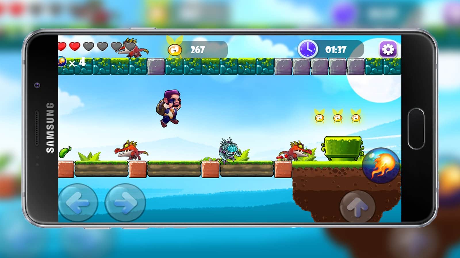 Zıplayan Çocuk Dünyası – Android için bir platform oyunu, burada çeşitli dünyalarda seyahat edeceksiniz. Bu oyundaki ana göreviniz, kahramanınızı birçok engel, ölümcül tuzaklar ve tehlikeli düşmanlarla dolu oyun yerlerinden geçirmek olacak. Seviyeler arasında hareket edin ve tropikal ormanlardan, karla kaplı geçitlerden ve kasvetli mağaralardan geçin. Bu oyundaki kontrollerin basitliği sizi memnun edecek, cihazınızın ekranında bulunan özel butonlarla kahramanı yönlendirin, ona zıplama ve koşma komutları verin, ayrıca taş engelleri kırarak beklenen paraları kazanın. Platformlar üzerinde zıplayın ve canavarlara ve düşmanlara ateş edin.