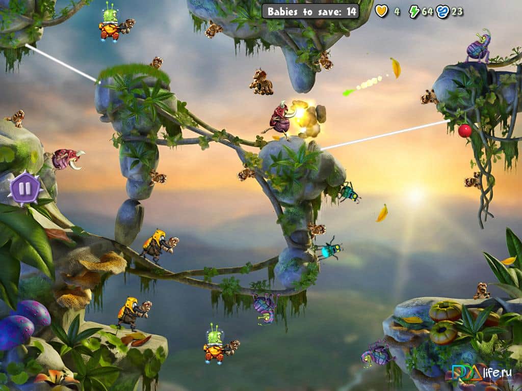 Jumping Jupingo - android için bir oyun, burada uzaylılara çeşitli seviyelerde onlara gereken ipekleri toplamaları için yardım etmelisiniz, bu ipekler onları kendi gezegenlerinde ölümcül doludan koruyan sağlam şemsiyeler yapmaları için gereklidir.