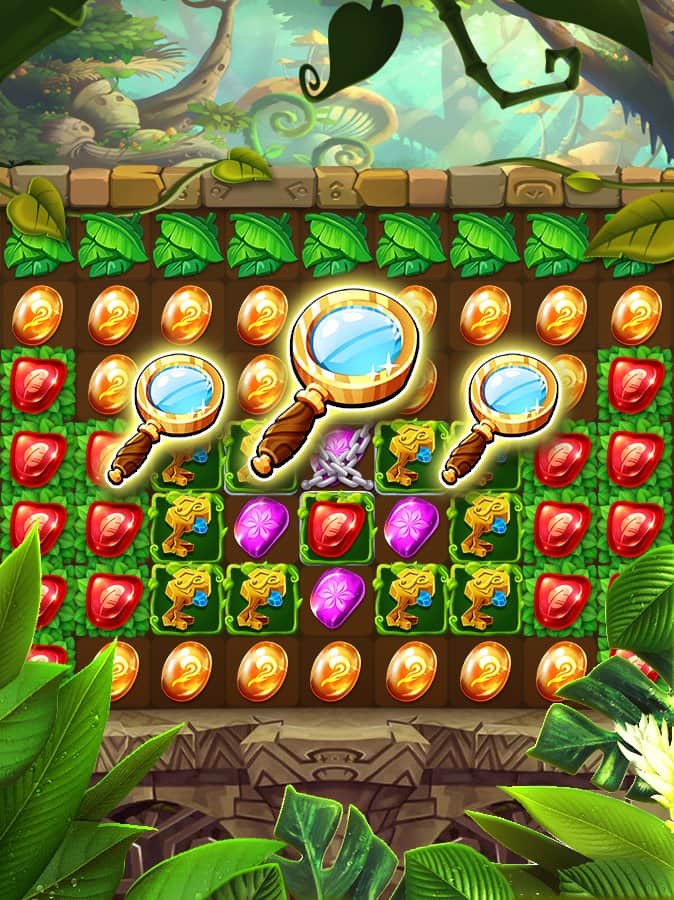 Jungle Crush Diamond – Android için üçlü eşleştirme türünde heyecan verici bir oyun, burada kaybolmuş bir tapınağı keşfedeceksiniz. Bu oyunda ana göreviniz üç veya daha fazla değerli taşın sıralarını oluşturmak ve sayısız hazineyi toplamaktır. Yolunuzdaki tuzaklardan ve engellerden kaçının ve terkedilmiş tapınağın derinliklerine doğru ilerleyin. Mantığınızı ve zeka seviyenizi kullanarak zor görevleri çözün, taşların gücünü açığa çıkarın ve kombinasyon vuruşları yapın. Değerli ödüller kazanın ve bu oyunda sunulan 1000'den fazla yeni seviyeyi keşfedin.